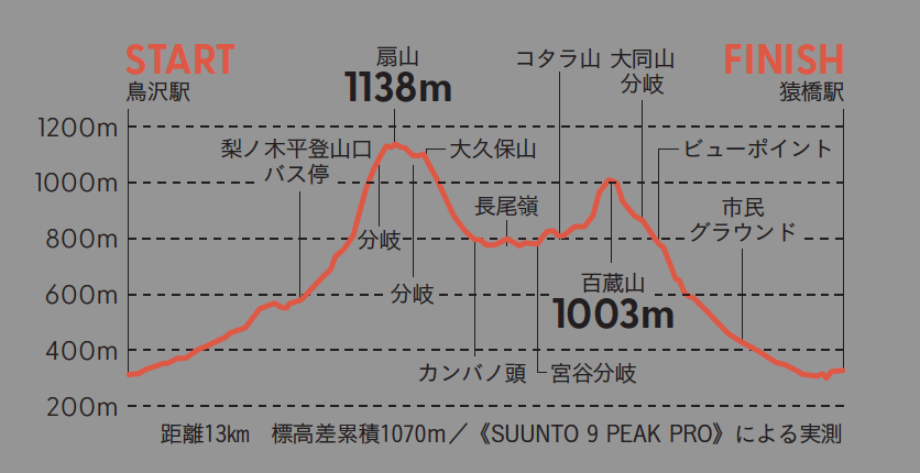 なので高尾駅から先、相模湖駅、藤野駅、上野原駅、四方津駅……どの駅で降りても、そしてどの駅から北に向かっても、南に向かっても山があります、つなげられます。駅から駅へのトレランが楽しめます。