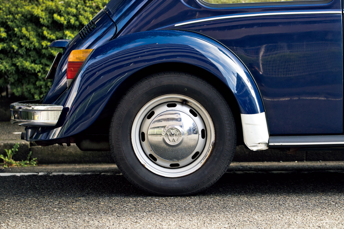 おっ! ビートルだ。懐かしい! と道行く人にチラチラと見られるこちらは、オールディーズレゲエを中心に扱うオンラインレコード店〈FAR EAST RECORDS〉のオーナー、富田実さんの愛車。しかも、創刊まもない『ポパイ』の1977年11月10日号の表紙を飾った車体と同じネイビーブルー! もしや45年選手?