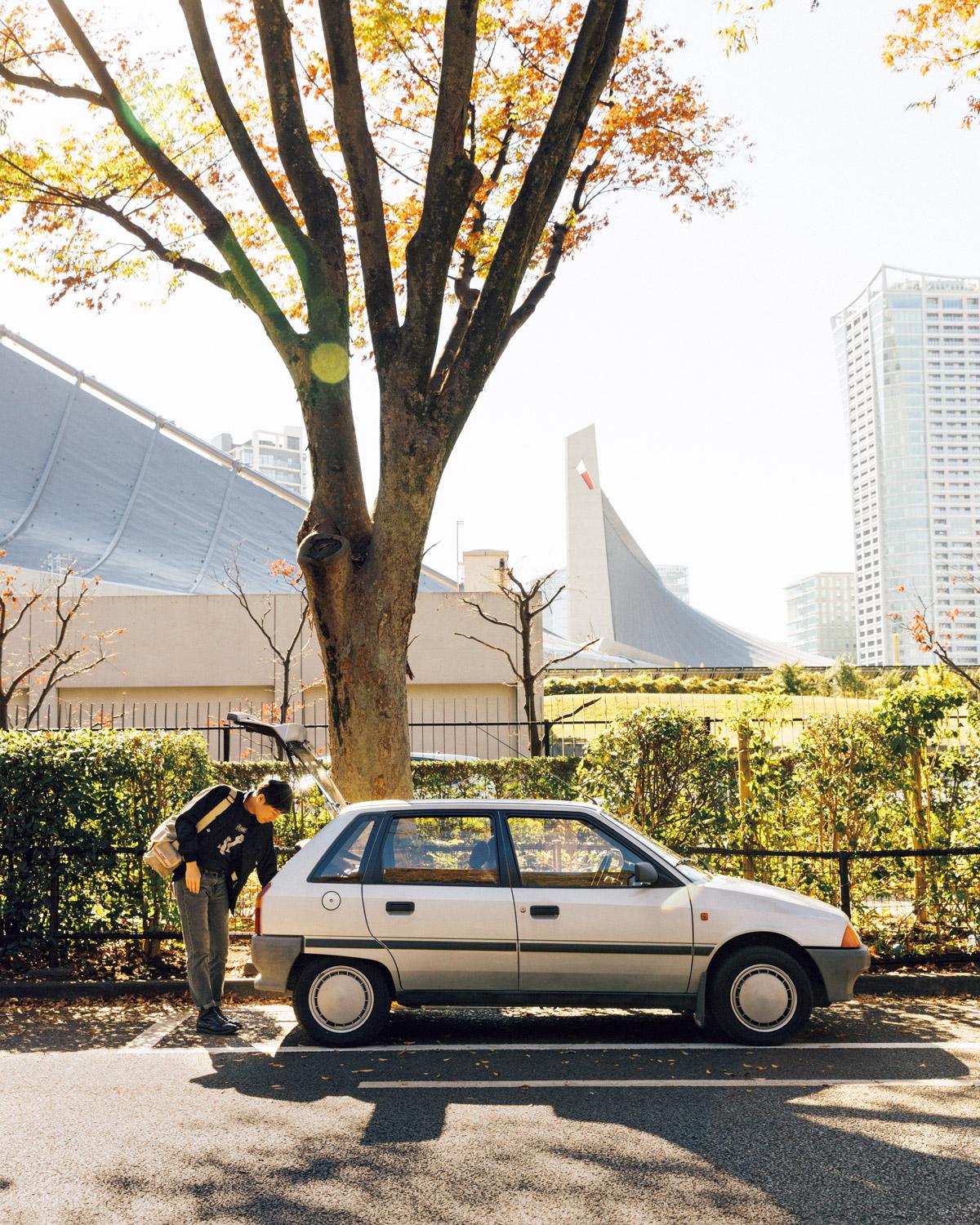 このグッドルッキングなコンパクトカーは、《シトロエン AX 14 TRS》。古き良きプロダクトをこよなく愛し、オンラインでヴィンテージショップ〈セカンドディスコ〉も営む写真家、加藤史人さんの愛車だ。