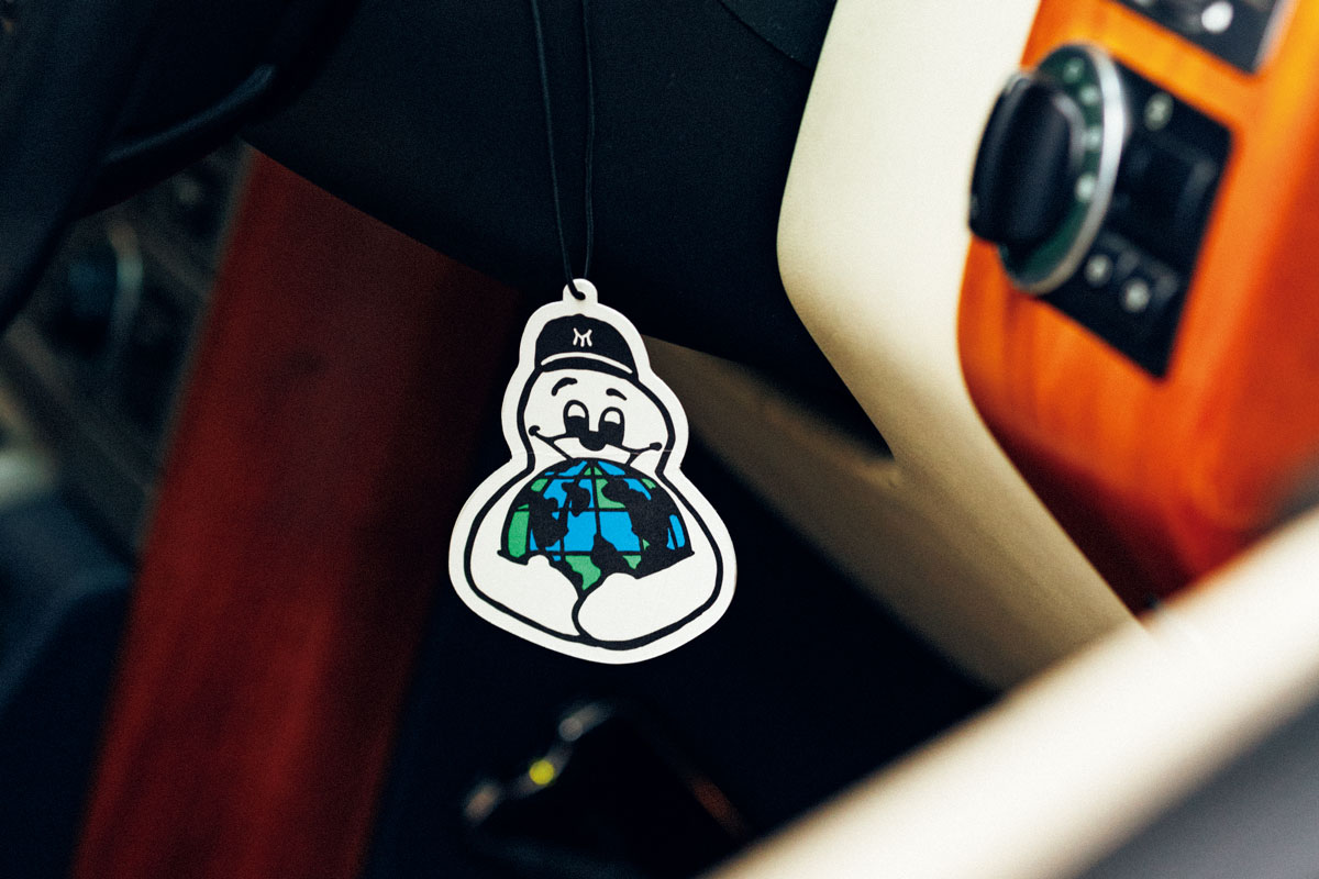 「僕にとって初代はクラシックすぎる気がして。90年代〜00年代初頭の雰囲気を持った洋服が好きなこともあり、3rdレンジのシティな面構えがちょうどいいなと。でも実はミックス型なんです。もともとはBMWエンジンを搭載した3rdの初期型なんですが、ライトまわりやグリルなどのフェイス、20インチのホイールなどは3rdの後期型に替えているんです。これは、BMXのカスタムから始まって、いろんなブランドと面白い服を作っている〈ミンナノ〉の店主、中津川吾郎さんが手がけたもの。わかる人にしかわからないカスタムを施した究極の一台を格安で譲ってもらったものなんです(笑)」