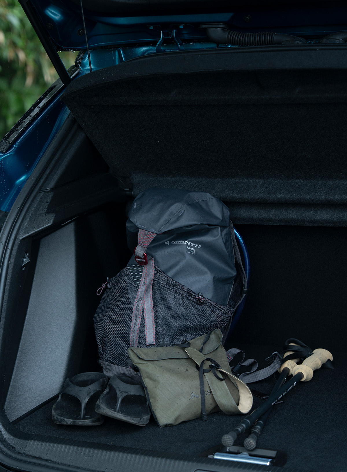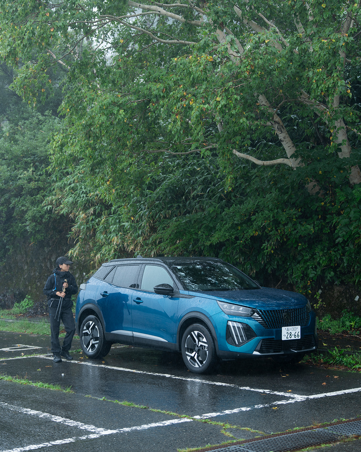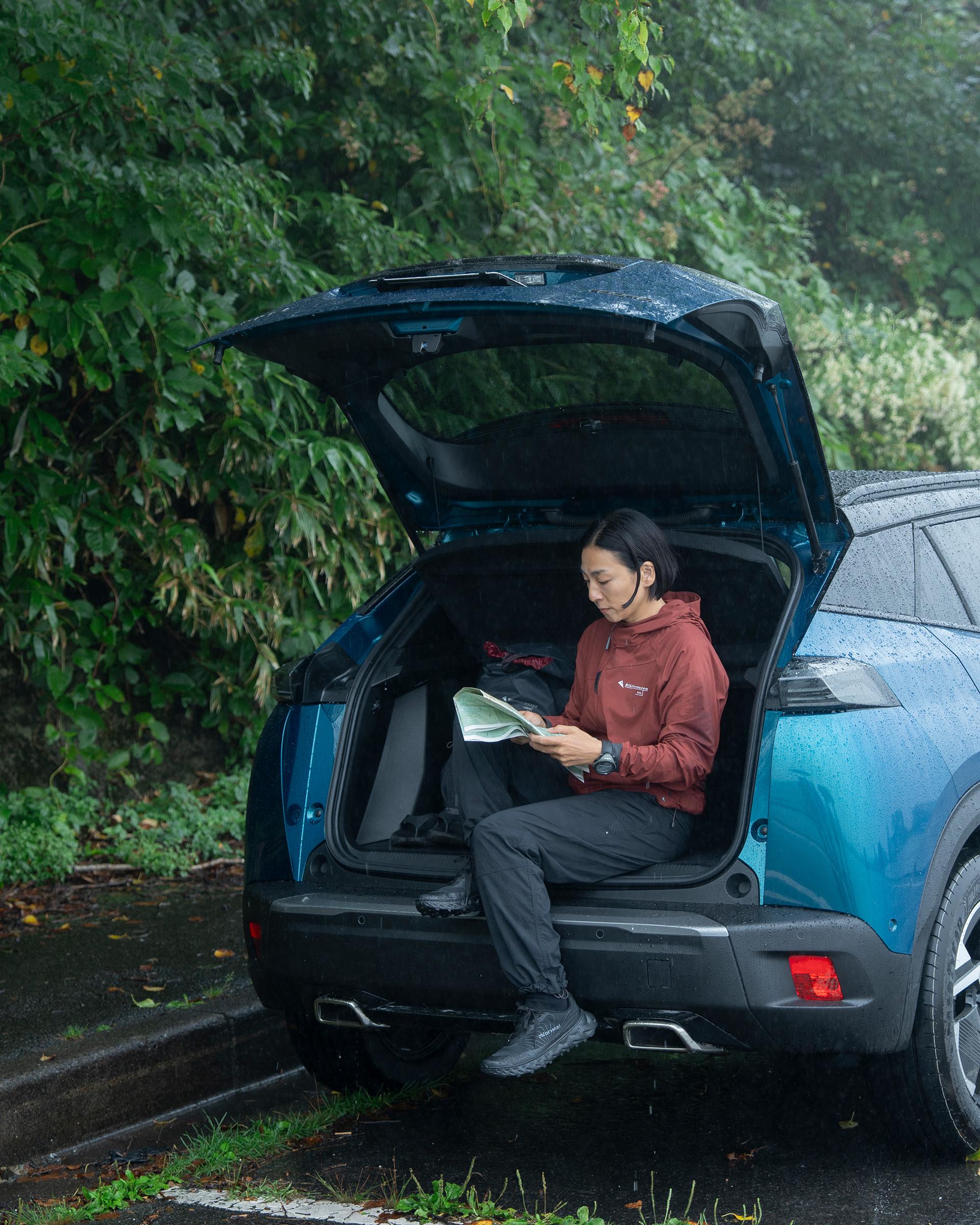 以前ほど装備を買い足すことはなくなったが、その時々のプランに応じて整える。枝さんにとって、道具のデザインとは「機能によって作られるもの」。たとえばこの日背負っていたバックパックのアルミのフロントバックルは耐久性を、ストックのコルク調EVAグリップは手に馴染みやすく滑りにくさや軽さも備えている。まずスペックがあり、そこから色やフォルムの好みで選んでいく。《プジョー2008》についても、それと同じ目線で語ってくれた。