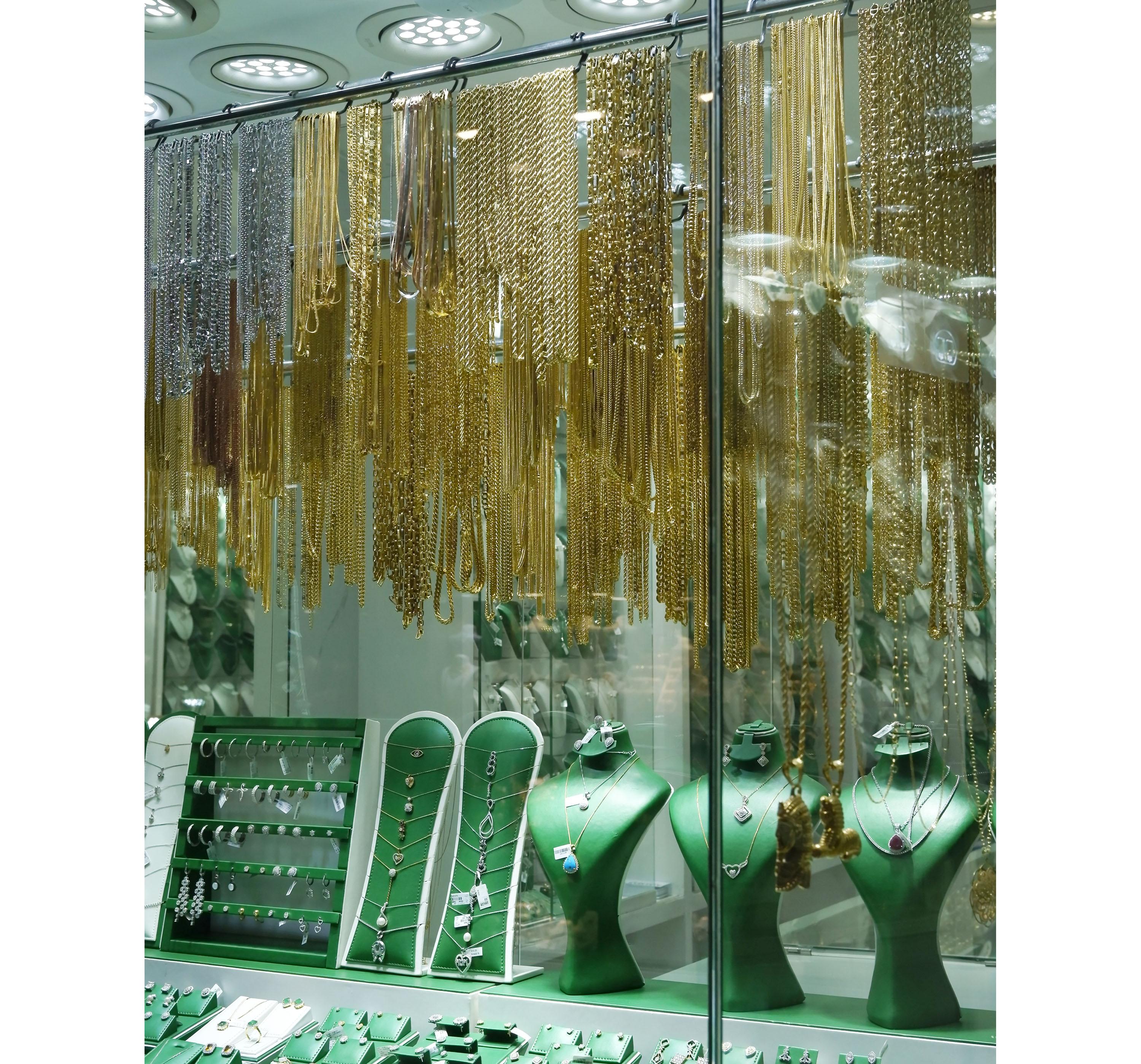 少し道を外れると、ゴールド・スークへ。民族衣装に身を包んだアラブの人々が電卓を叩いて金の価格を計算している様子を見るのは、なんともエキゾチックでユニークな体験だった。
