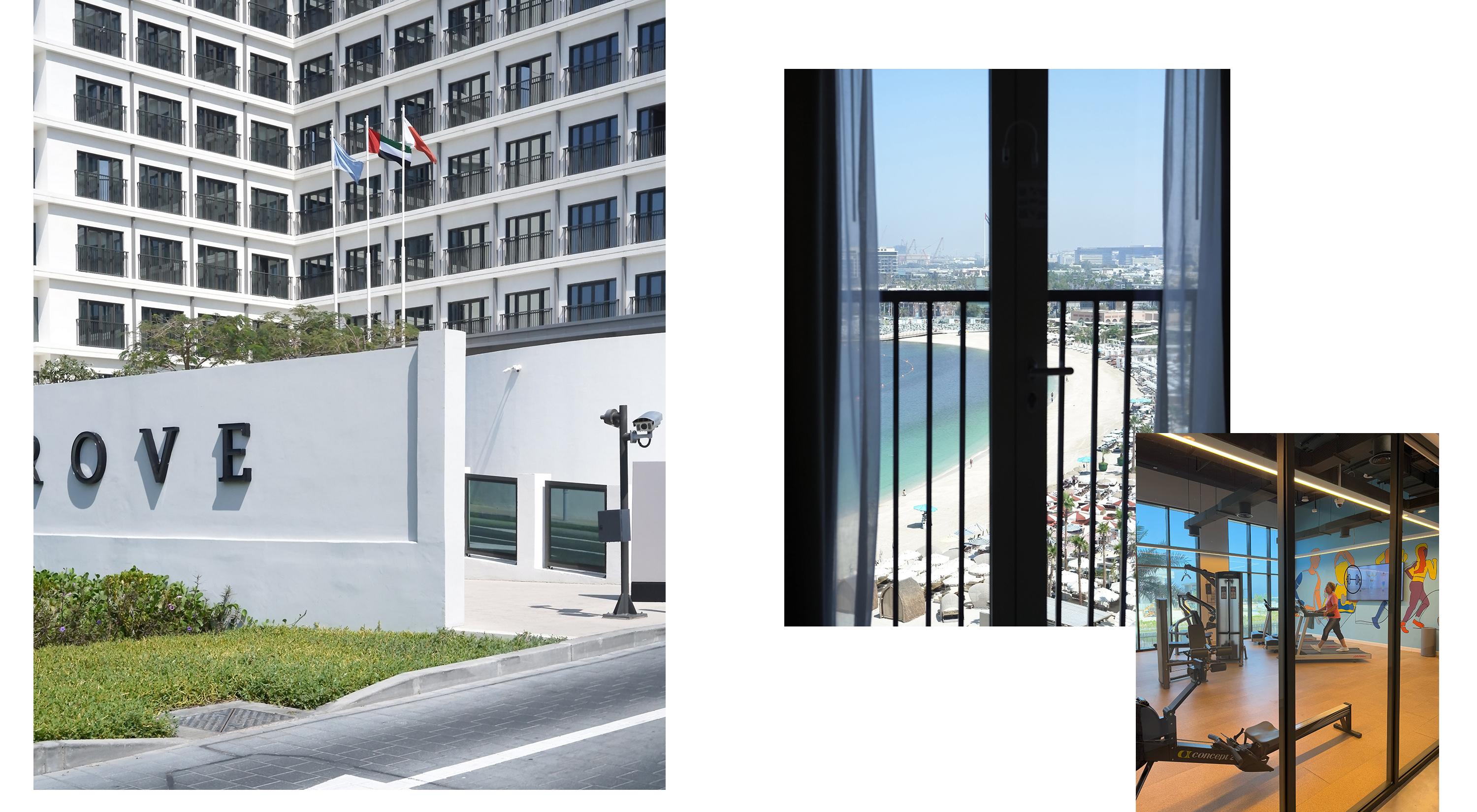 今回宿泊したのはドバイに9施設を構えるリーズナブルなホテルブランド〈Rove Hotels〉のジュメイラ地区にある一室。部屋からは美しいビーチが望めた。館内にはジムも併設。
