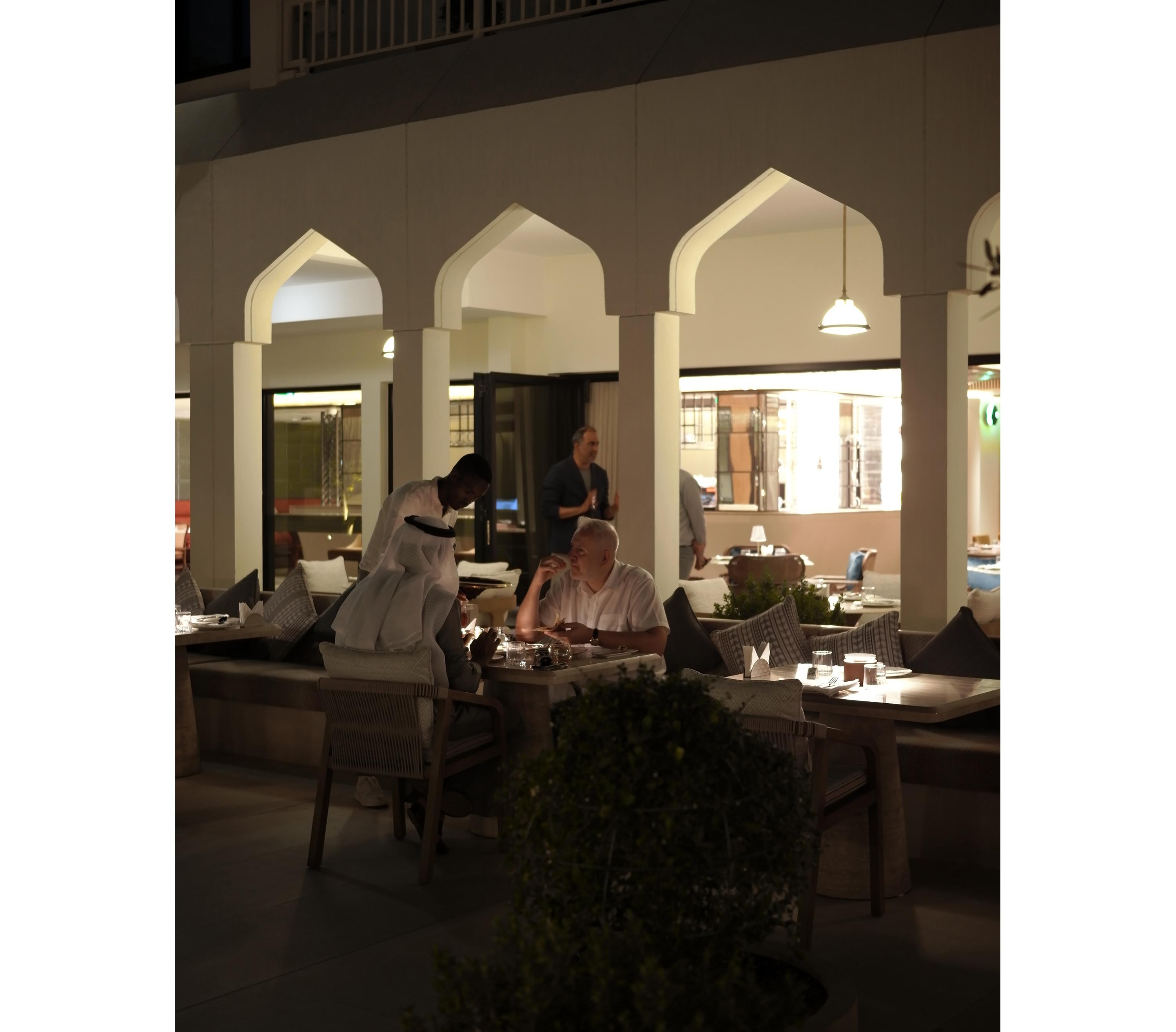 ヨガ、サウンドバス、ハマムと朝から身体を動かしたり労ったり忙しかったこの日を締めるのは、競馬場や一流ヴィラが立ち並ぶ、ナド・アル・シェバ地区に位置しているドバイ屈指のトレンディーなレストラン〈GERBOU〉での夕食。エミラティ料理と呼ばれるUAEの伝統食をモダンにアップデートした超人気店だ。