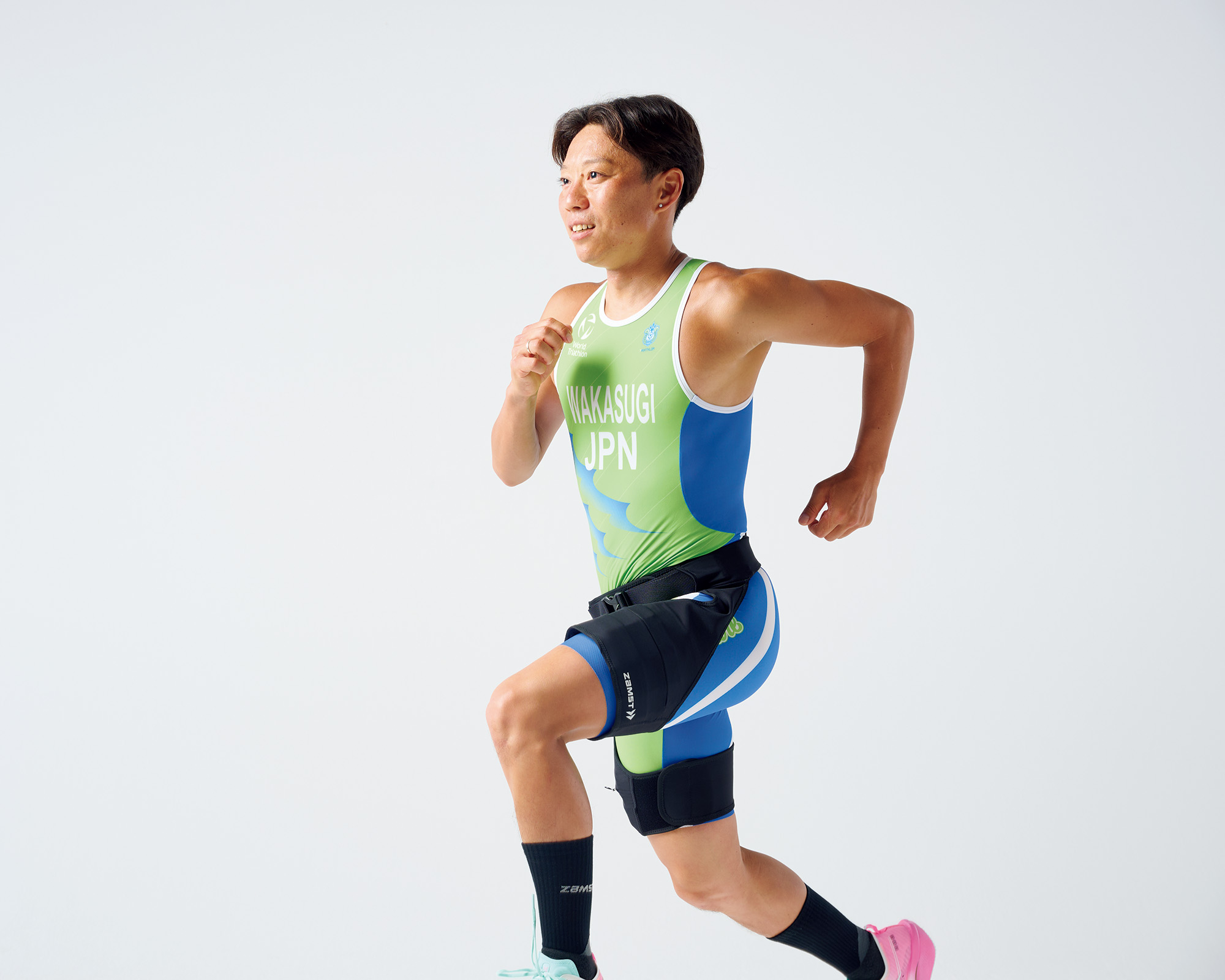 中島さんと一緒に取材に応じてくれたのは、同じく湘南ベルマーレトライアスロンの若杉恵夢さん。さらに、医療基準のスポーツ用サポーターやインソール(シューズの中敷き)で知られる〈ザムスト〉ブランドを展開する〈日本シグマックス〉の森亮太さんにも加わってもらうことにした。