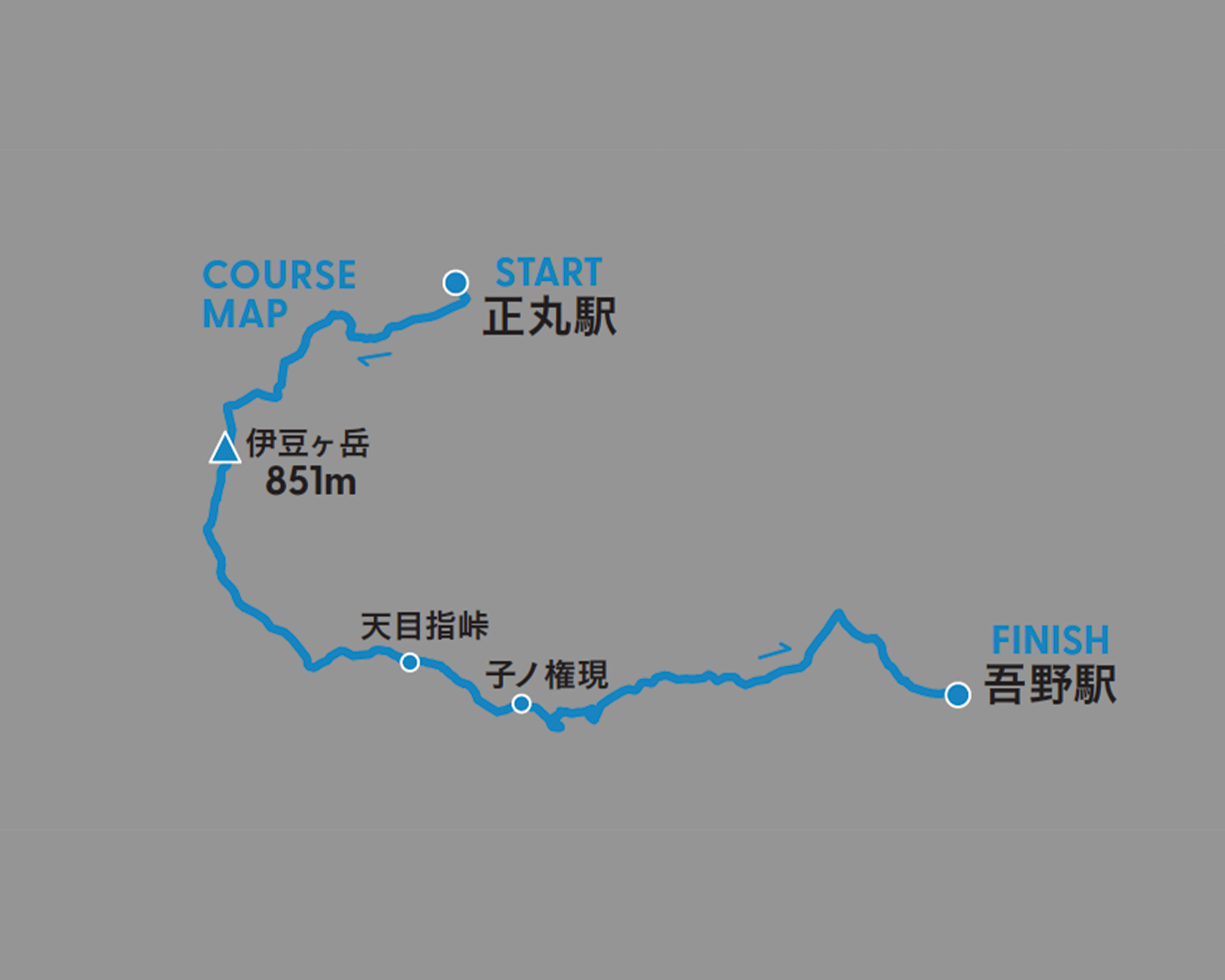 851mの伊豆ヶ岳までは上りですが、そこから先の天目指(あまめざす)峠までアップダウンはあるものの下り基調、そして子ノ権現までまた上る、という走り応えたっぷり。杉林やシダ、岩場など、次々に路面は変化して飽きません。