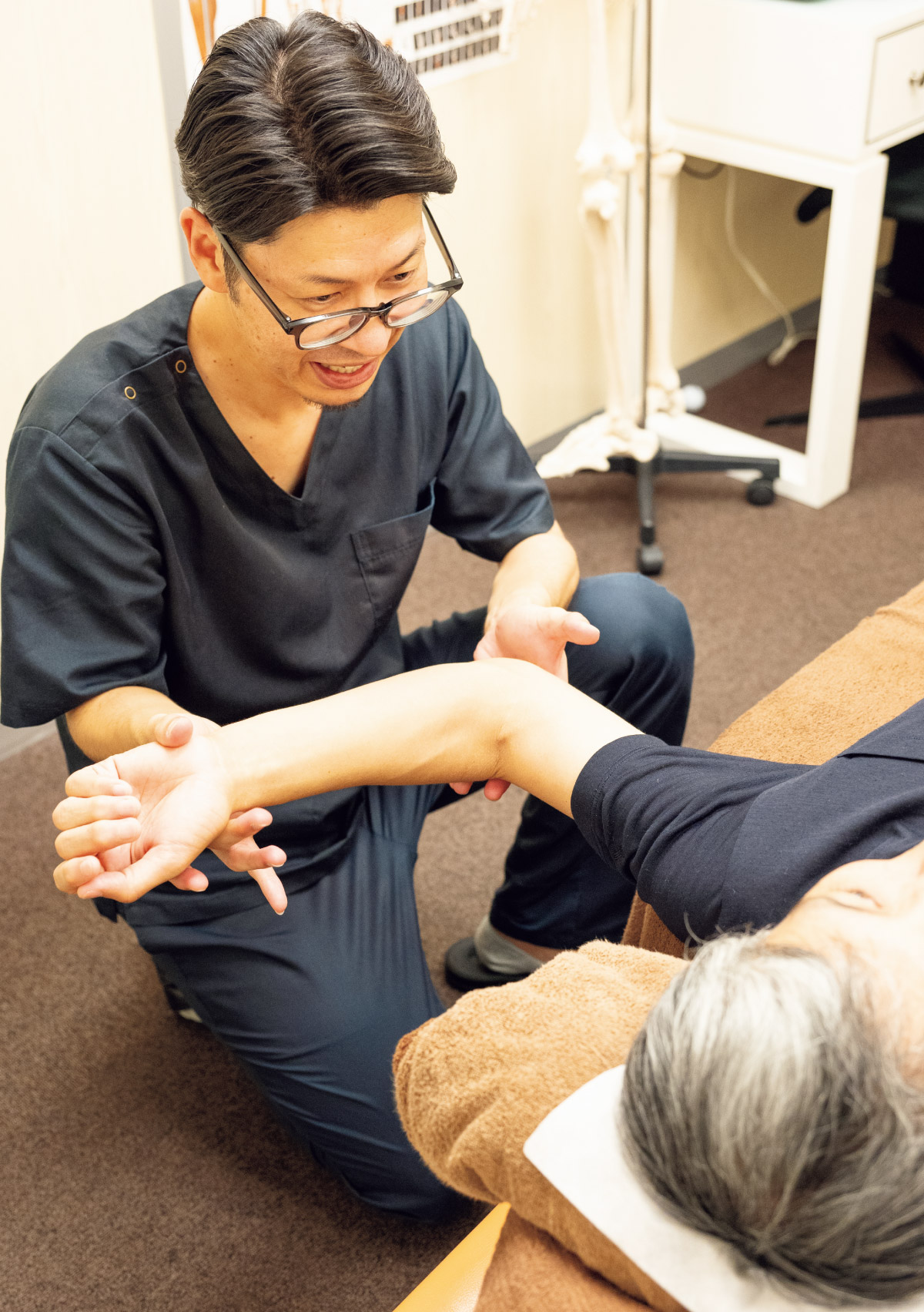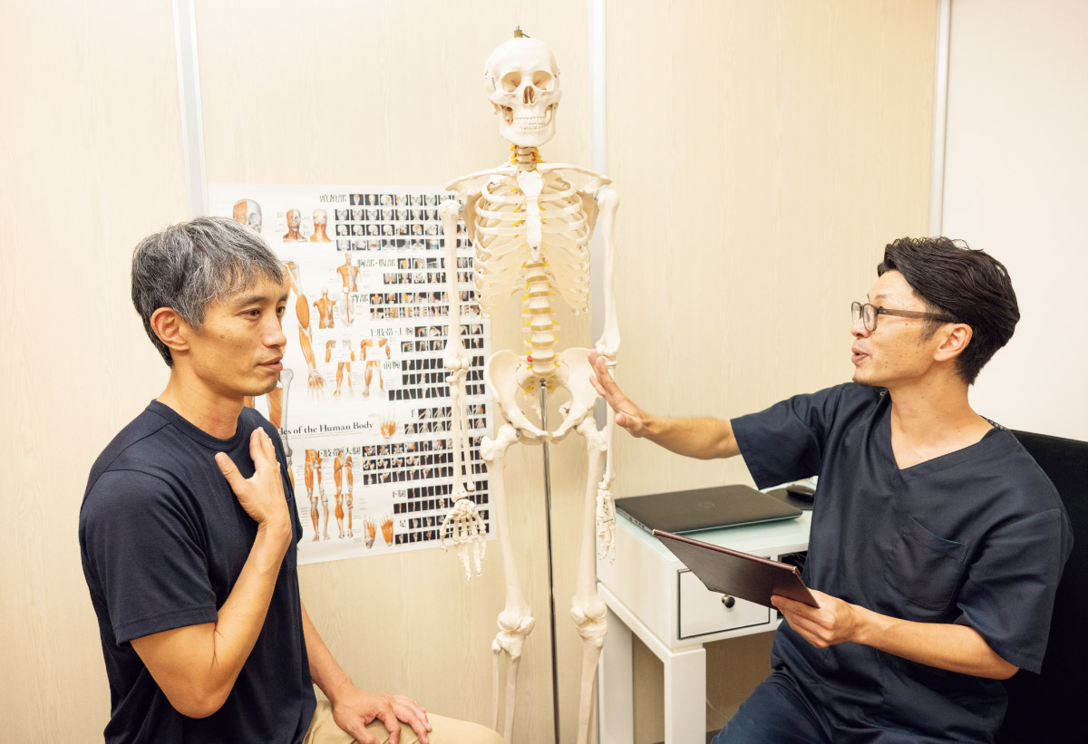「症状が出ている部位だけへのアプローチは、瞬間的な痛みの改善やリラクセーションにはなるかもしれませんが、根本的な解決にはなりません。全身に対する施術によって関節の位置や動きを正しながら、脚を組む、頰杖をつくといった日常生活中の癖などを見直していくと、歪みや症状が改善していきます」と、高野直樹院長。
