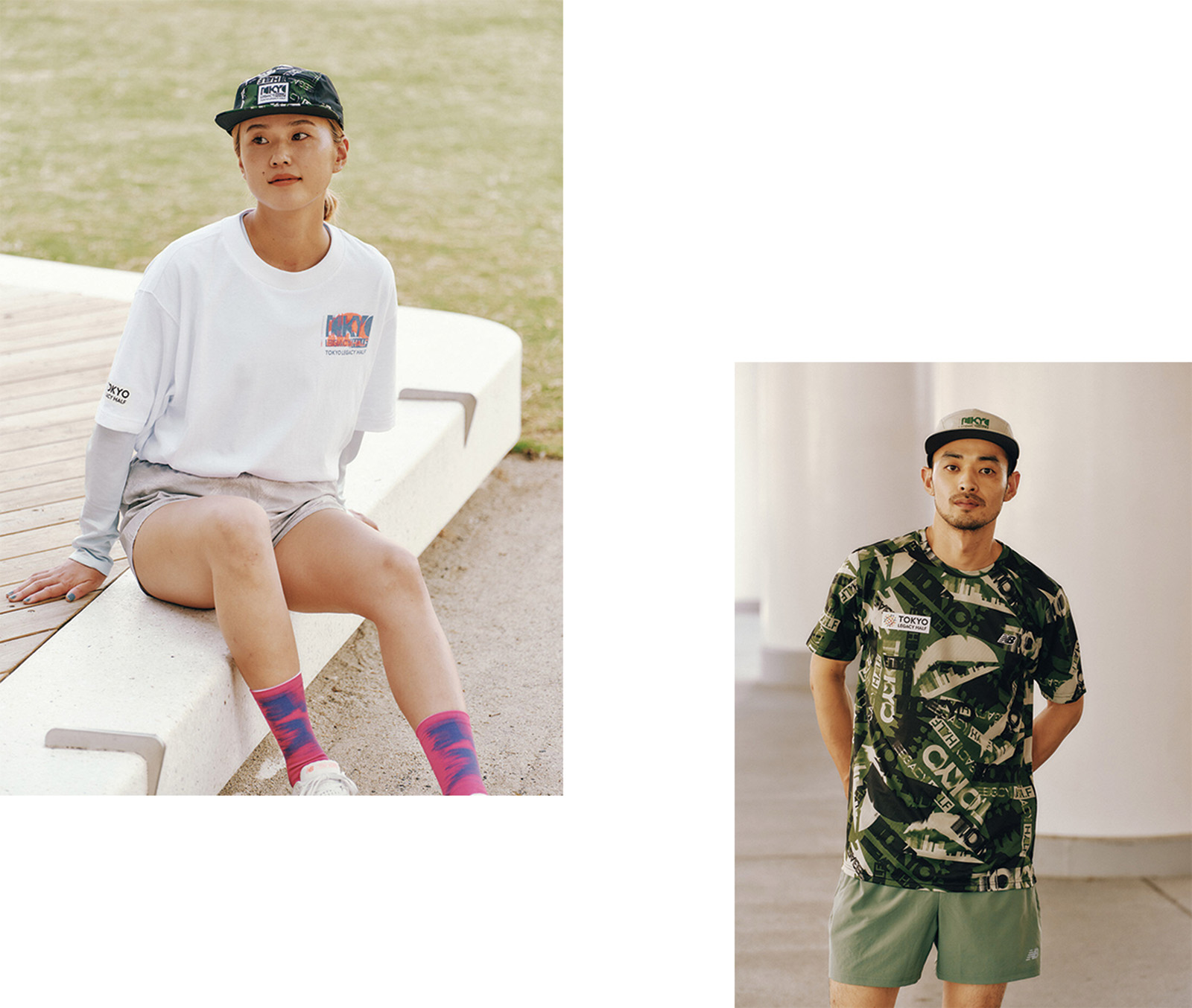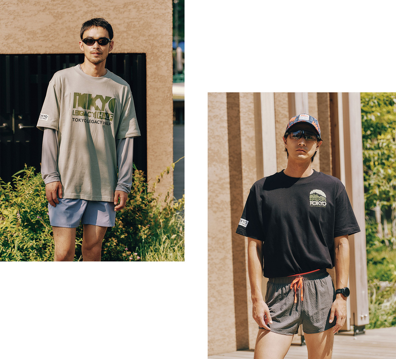 《Tokyo Legacy Half T-Shirt》は、東京の街をモチーフにしたグラフィックプリントデザインが施されたボディに、右袖には『東京レガシーハーフマラソン2025』の大会ロゴもあしらわれている。