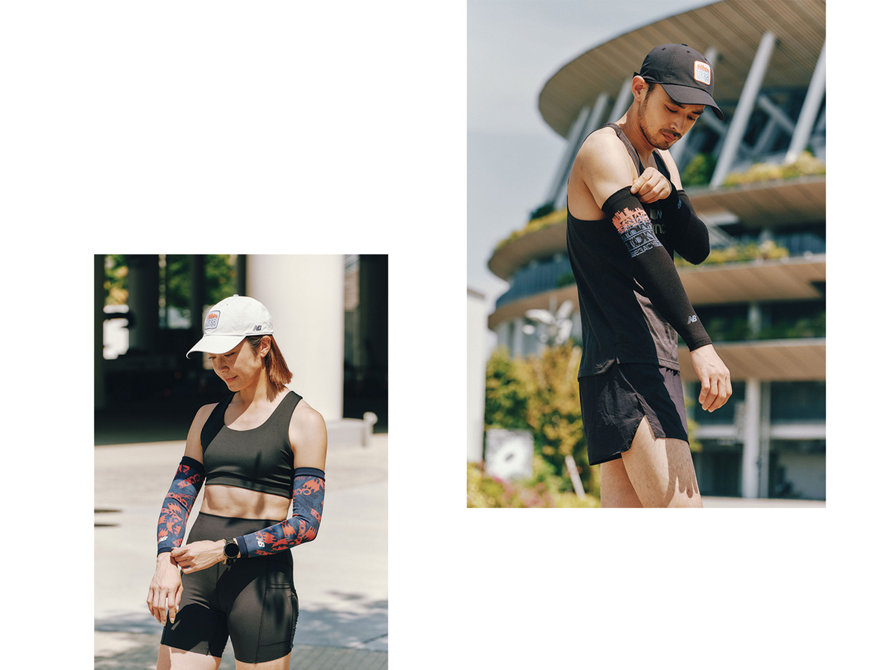 コレクションのデザインには、東京の街そのものをモチーフにしたグラフィックをあしらい、ランナーの走りを支える各アイテムを用意。そのラインナップの中から、3アイテムを紹介しよう。