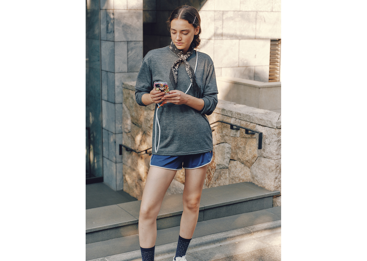 まだメンズ中心のラインナップだが、女性でも着たくなる、着られる色やデザインが多い。最近はウールブレンドのバンダナを購入したばかりだ。もし冬の公園で落としたら、見つかりにくいくらい色が同化している。まだ首に巻いて走るには気恥ずかしいところもあるが、〈HERENESS〉のグレーのウールTシャツに合わせると(自然に見えるし、)暖かく、でもオーバーヒートしない。心地よい時間が増えていく。
