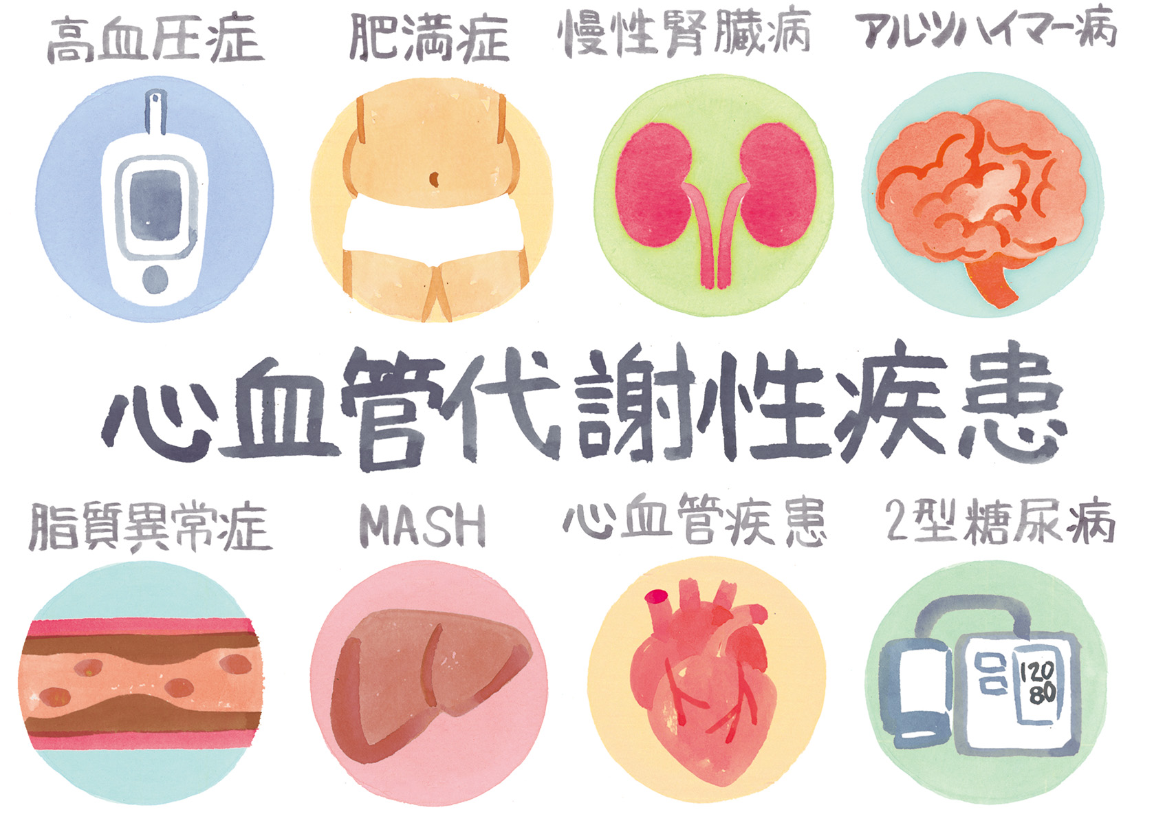 「肥満症」は今抱えている合併症以外にも、このような心血管代謝性疾患と呼ばれるさまざまな健康障害を引き起こしやすく、心疾患のような命に関わる疾患のリスクも高まる。BMIの数値が25以上であり、11の健康障害のうち一つでも当てはまる人は「肥満症」の可能性が高いので注意が必要。一度、医師に診てもらうことをおすすめしたい。