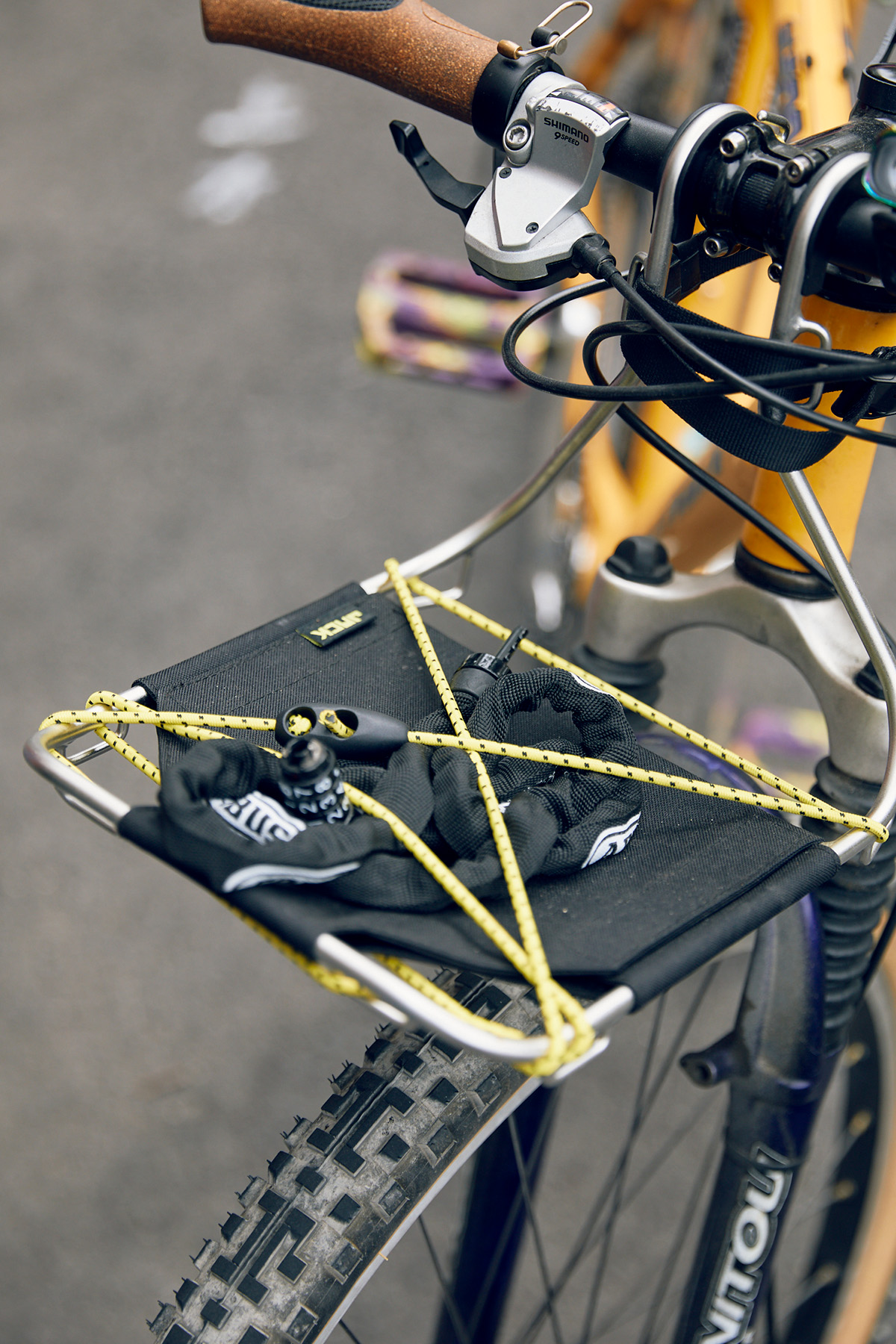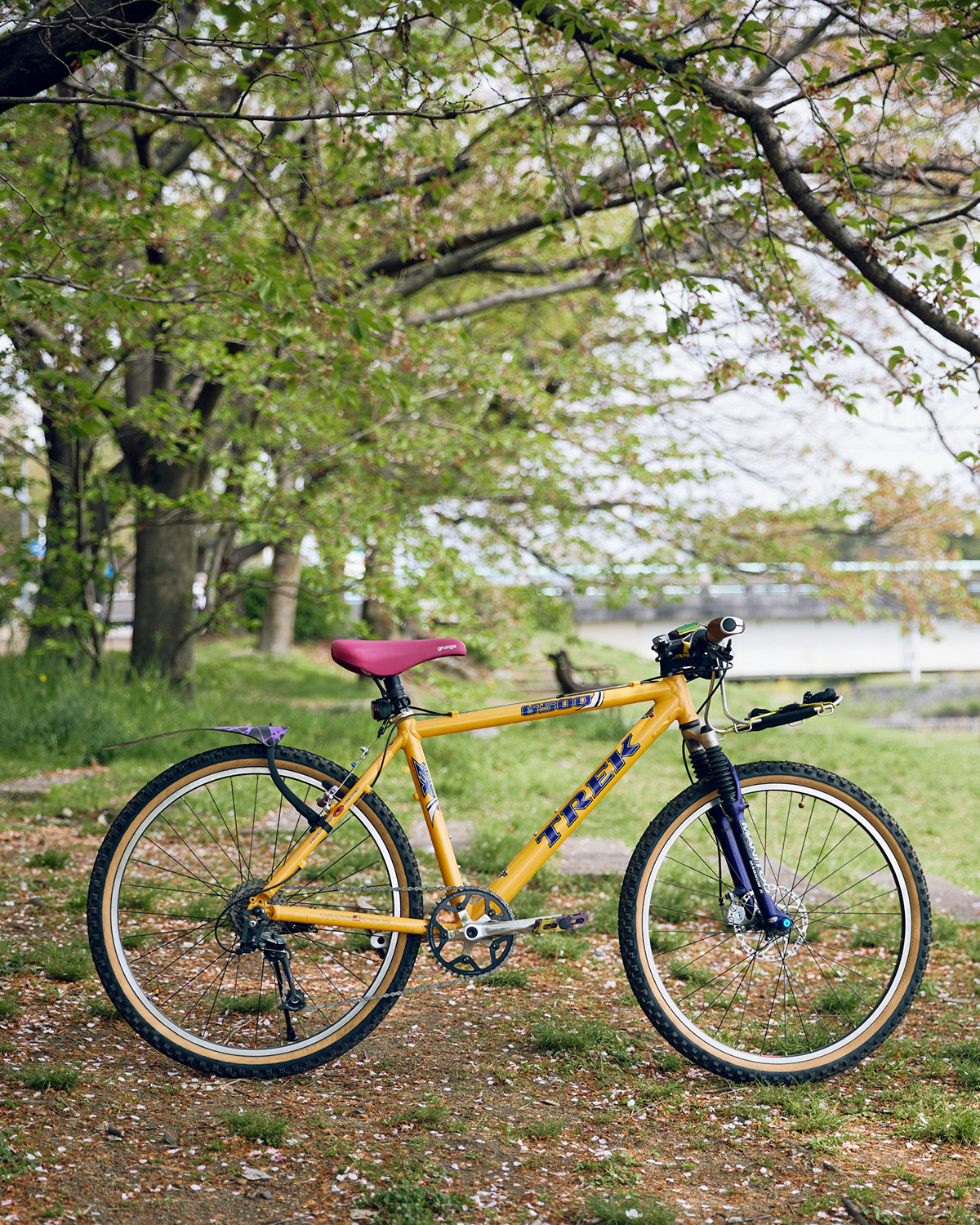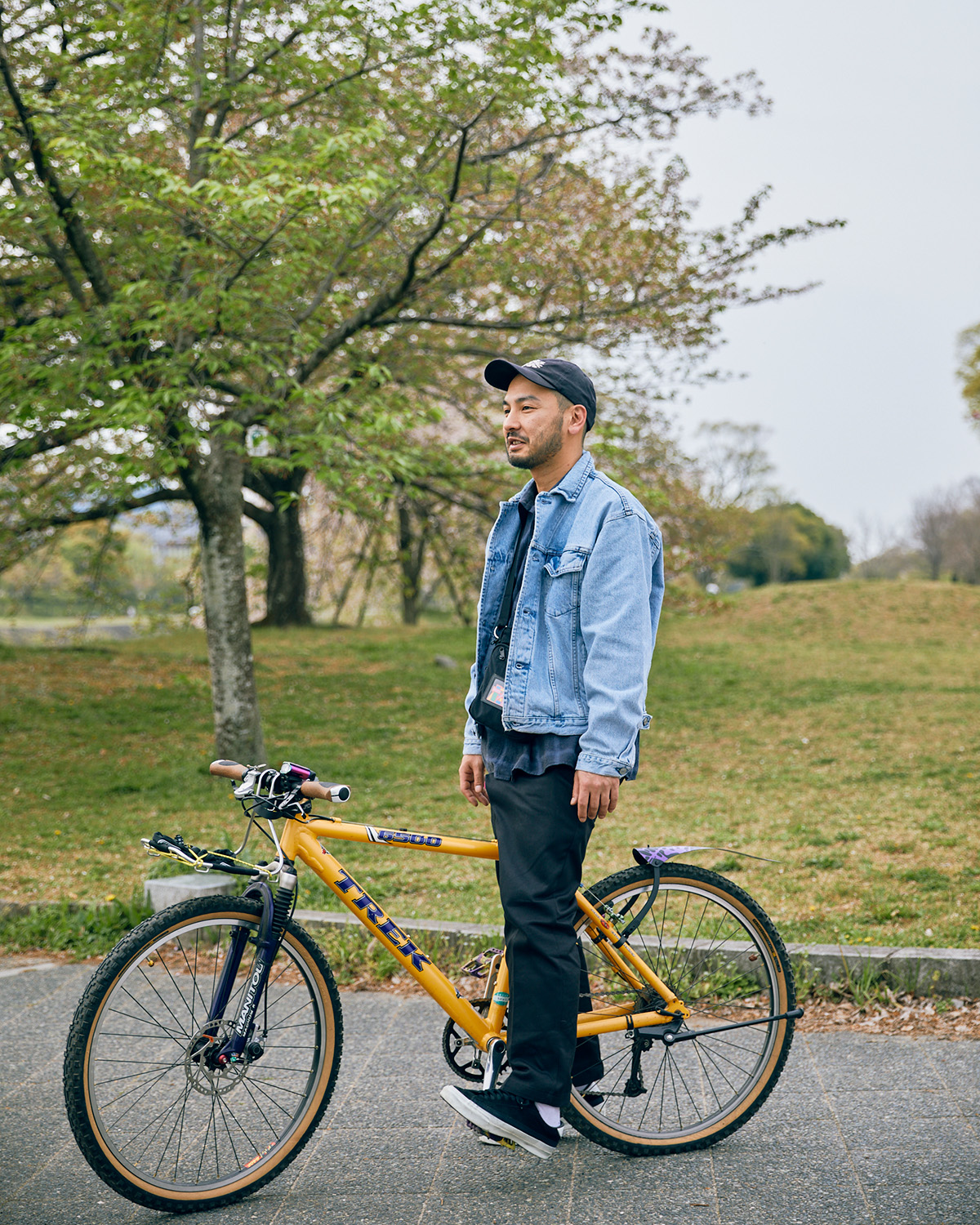 「いろいろなジャンルの自転車がある中で、90年代のマウンテンバイクを選んだのが、川良さんらしいなと思いました。なので、ハイスペックのパーツにはこだわらず、気取らず気軽に街を走れるよう組みました。いまっぽい小洒落た感じではなく、純正のサスペンションフォークに、幅の狭いハンドル、少し細めのタイヤを履かせて、小学生が乗っていそうなガチャガチャしたイメージですね」