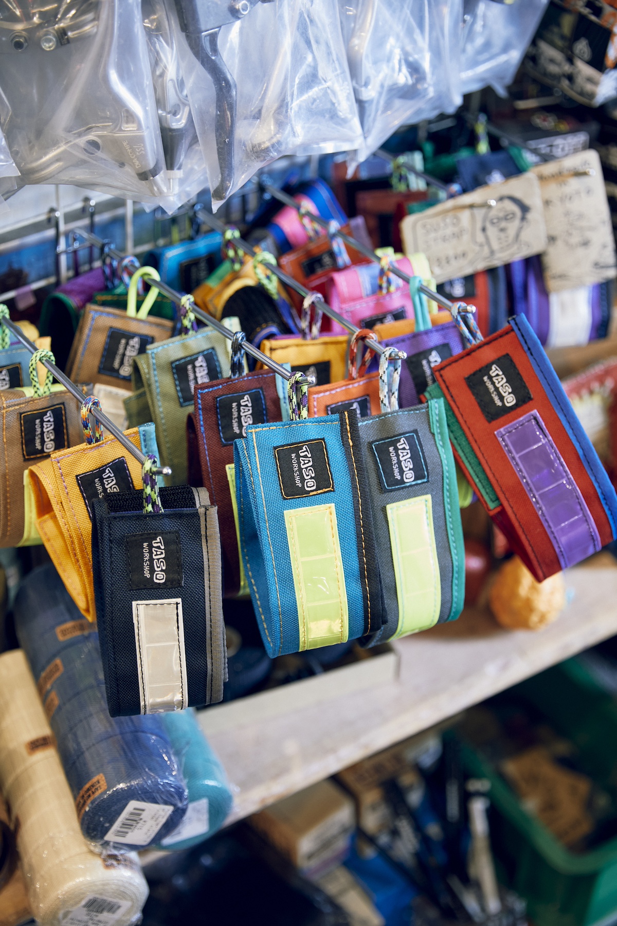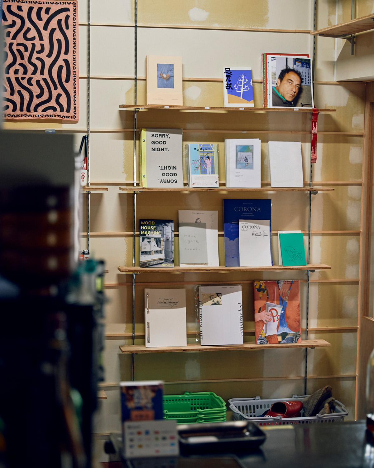 物販スペースには、さまざまなアーティストのZINEやアートブックが揃う。そして、川良さんが企画する〈TAKI / 焚〉のユニークなオリジナルグッズも目を引く。