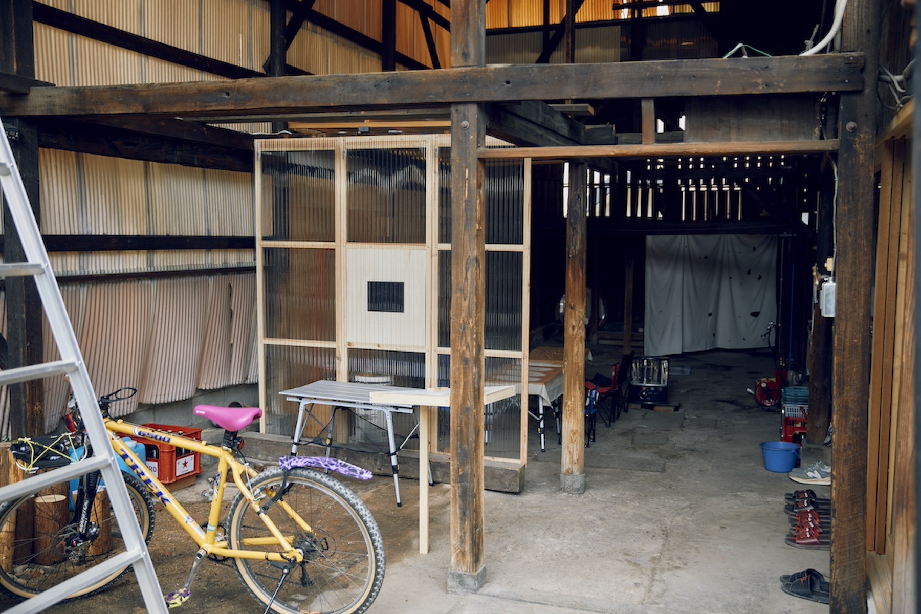 〈ha ra〉から自転車で15分ほど行った先に、川良さんの仕事場のひとつ〈TAKI / 焚〉がある。