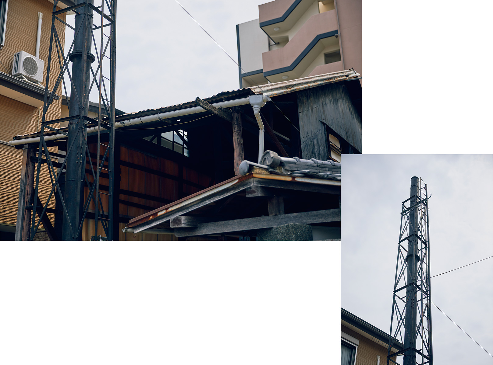 物件を見つけてから、店の構想を練り上げた〈TAKI / 焚〉。元染工場の建物ならではの独特な造りが、唯一無二の空間を生み出している。空に向かって伸びる大きな煙突が、店の目印に。