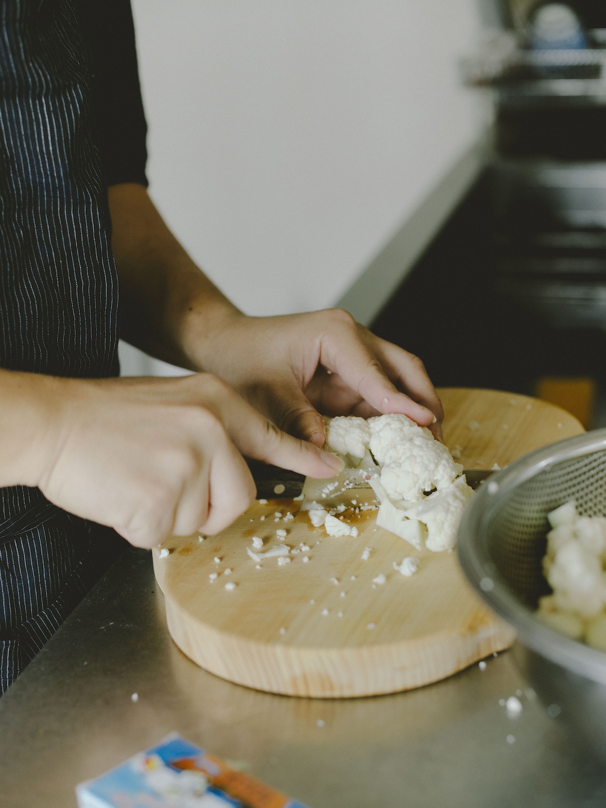 1.カリフラワーは小房に切り分けて、固めに茹でておく。玉ねぎはみじん切りにして、アンチョビは刻む。