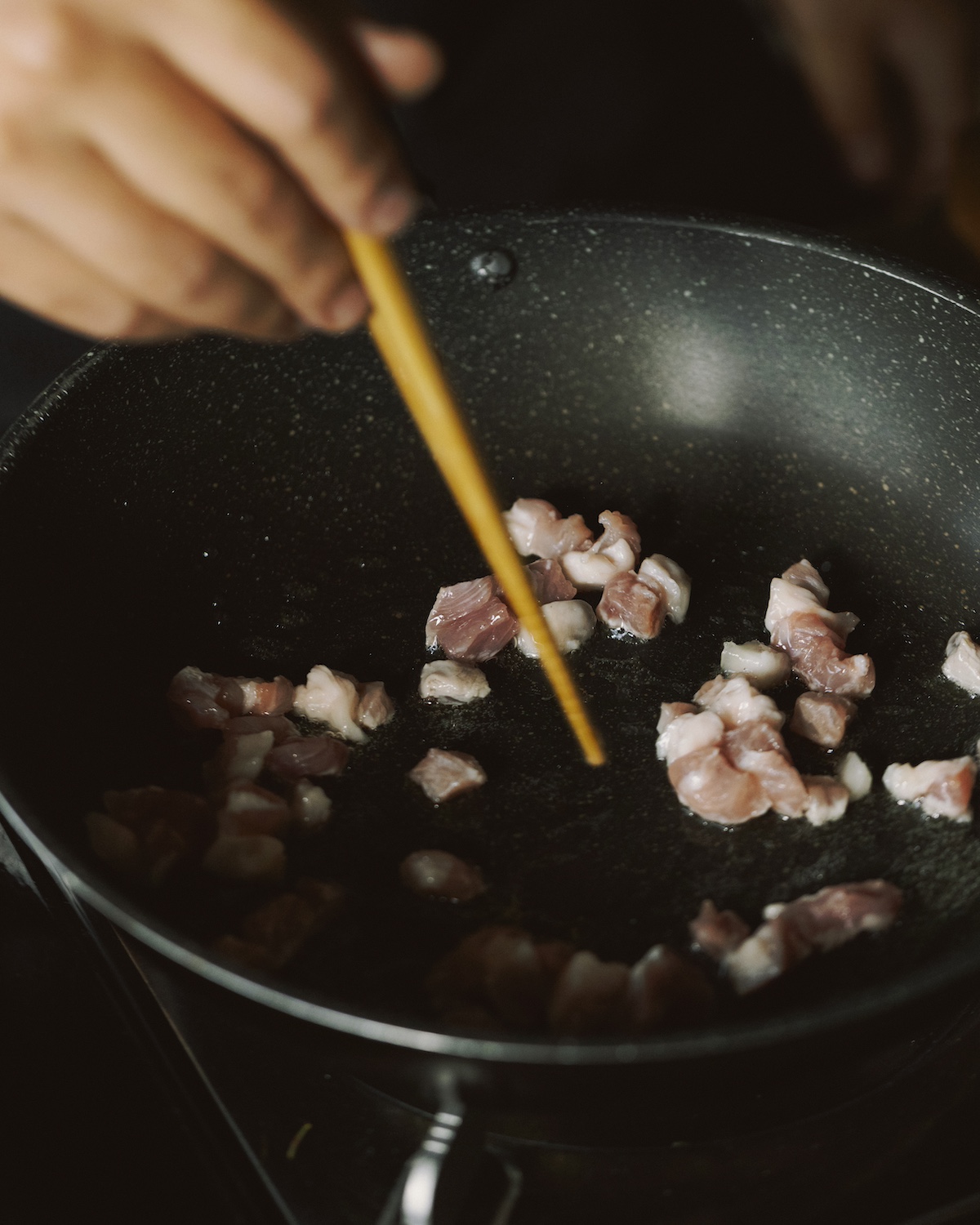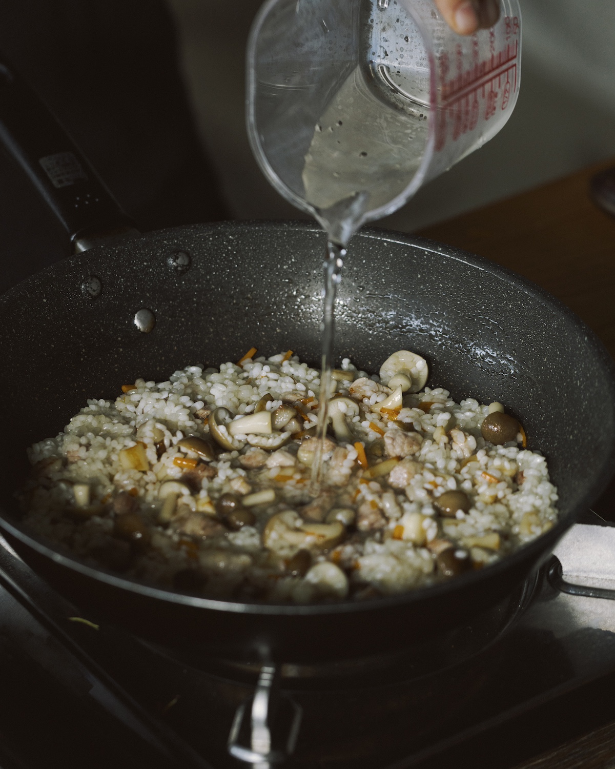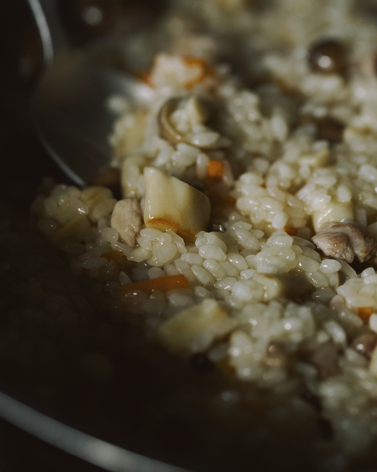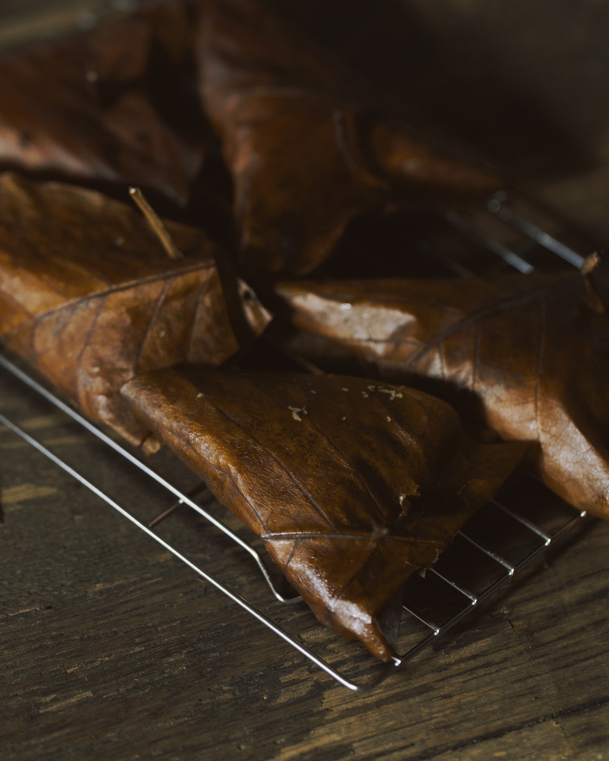 竹の皮を使って包むことが多い「ちまき」ですが、今回は朴葉で和風のちまきを作りました。朴葉はあまり市販されていないので、自分で落ち葉を収穫し、乾燥させるというプロセスもぜひ楽しんで欲しいと思います。料理のポイントは、ドライの朴葉を柔らかくするために浸しておいた水を出汁のように使うこと。風味をできるだけご飯に閉じ込めていきましょう。それから、繊細さを活かすために、香りの強くない米油を使っています。前日からの準備が必要で、少し手間はかかりますが、日本の豊かな季節を堪能できる料理です。