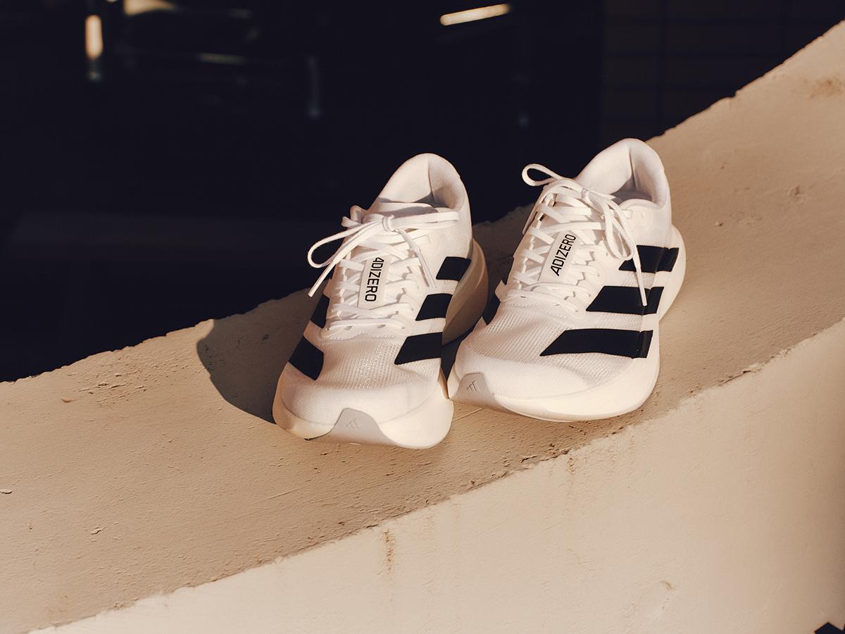 《EVO 1》のテクノロジーとイメージを一般ランナーにダウンシフトしたのが、《ADIZERO EVO SL》だ。プレートは入っていないが、削ぎ落とされたデザインとLightstrike Proフォームを踏襲している。代々木公園を走っていると、その着用率の高さに驚かされる。しかもおしゃべりしながら走るジョガーも、右から左からすごいスピードで抜いてくるランナーまで、実に多層的だ。カラーリングが絞られているからか、男女ともに総じてスタイリッシュに見える。というより、ランニング以外に自分の軸となるスタイルをもっている気がする。