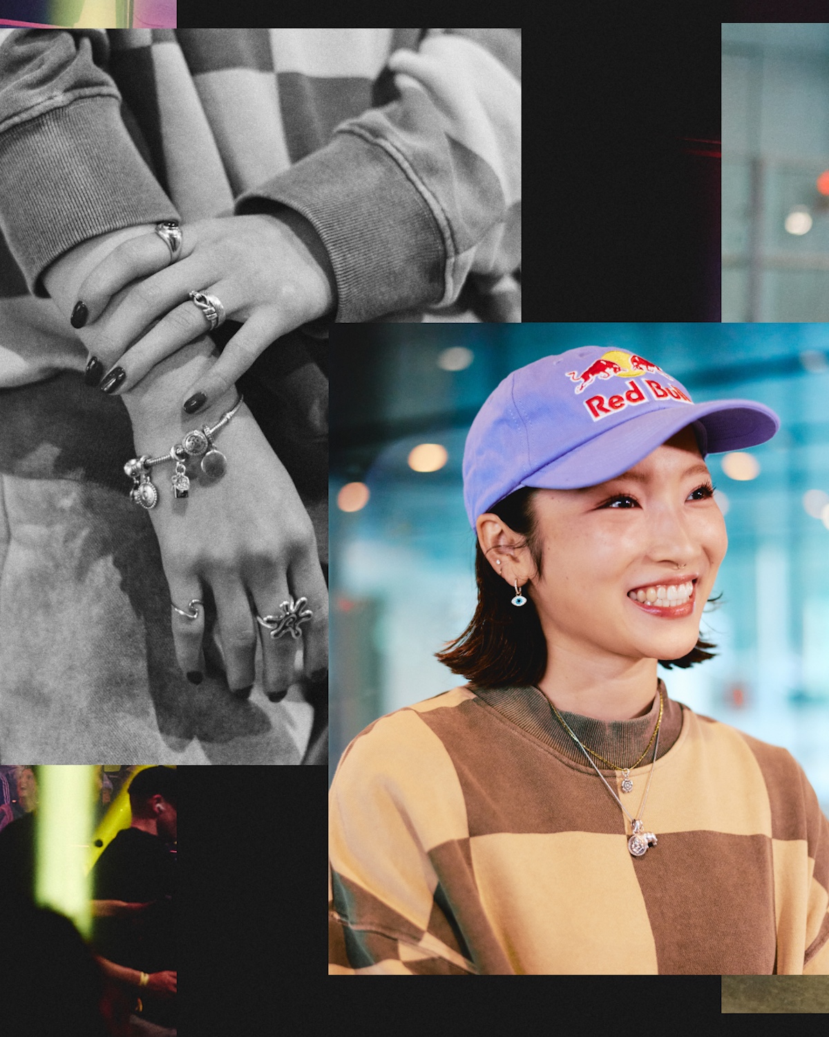 「大会本番ももちろん大切ですが、それまでの練習期間で、ベストを尽くせた! と言い切れるように取り組むことを大切にしています」とAmiさん。ファッションのポイントはアクセサリーだそう。「アクセサリーは、世界中の大会に参加したときに少しずつ買い足しています。最近のお気に入りは〈Pandora〉のブレスレット。チャームがカスタムできて可愛いんです」@gfc_ami