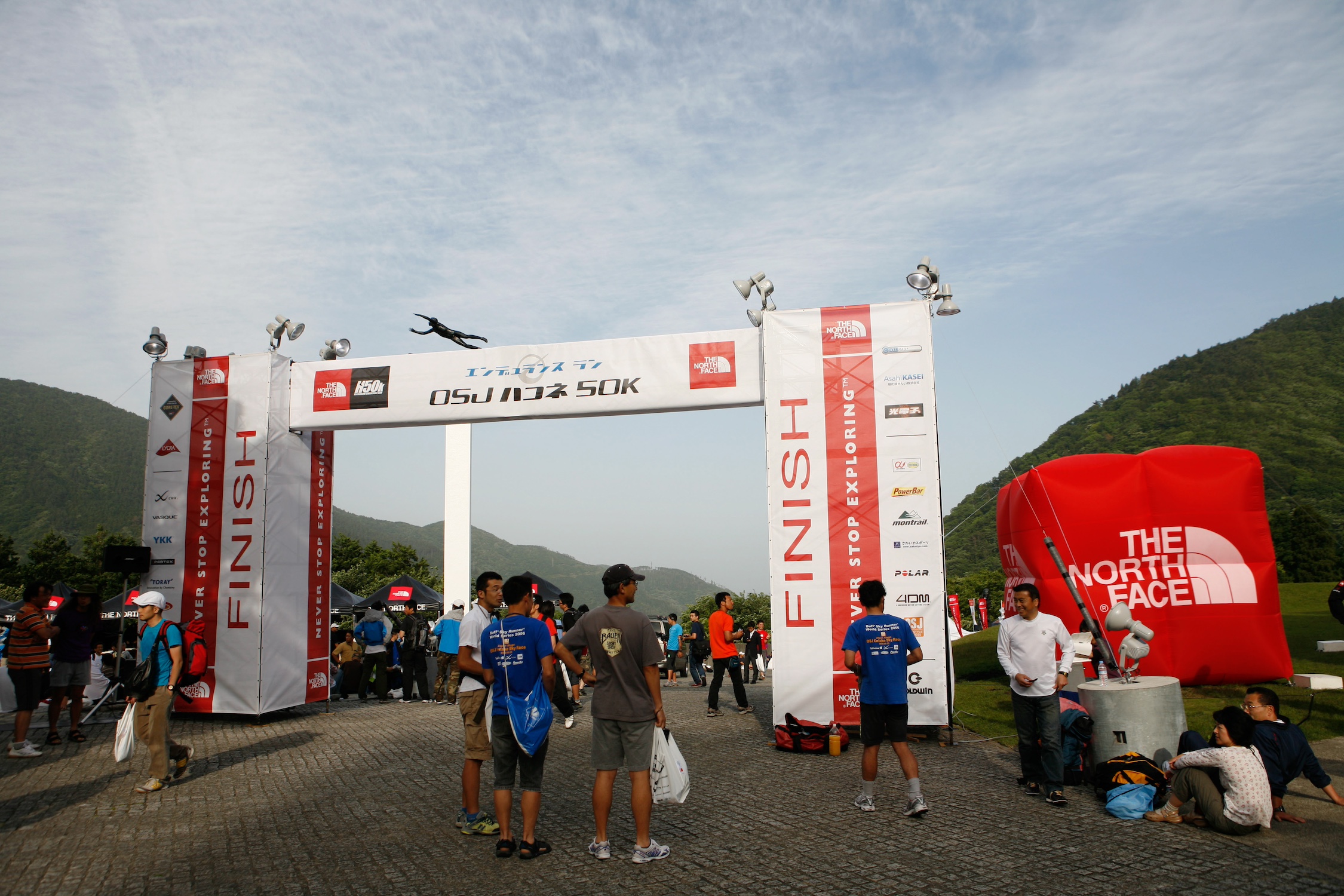 「ハコネ50K」にはお祭り、エンターテイメント的な演出が施される。「UTMB」のスタート/フィニッシュゲートを(「その1」で登場した)トーファー・ゲイロードさんの作成した内部資料から複写し、施工業者に同じものを彫刻の森に作ってもらった。そして「UTMB」名物とも言える赤い大きな〈TNF〉の四角バルーンを(ヨーロッパ〈TNF〉のイベント用資材でもある)を譲ってもらった。いやあ、かっこいい。