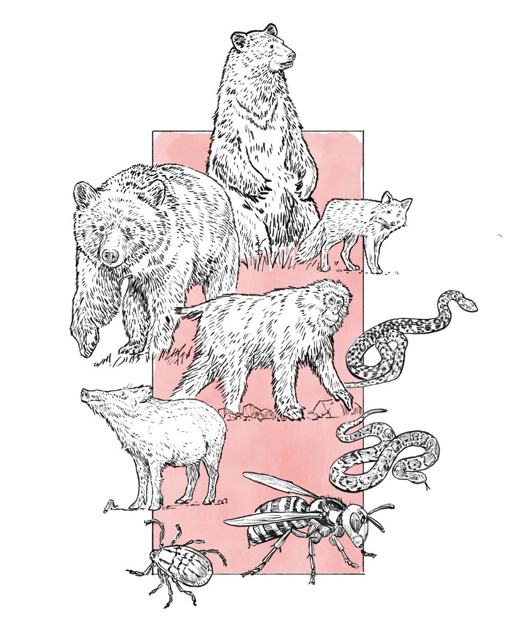 例えば、日本において、人間を最も死に至らしめている野生生物は、クマではなくハチである。市街地でも被害が発生しており、毎年20人前後が死亡している。また、マダニも深刻。媒介するSFTS=重症熱性血小板減少症候群の患者数は、これまで最多だった2023年の134人を、25年では8月時点で上回った。