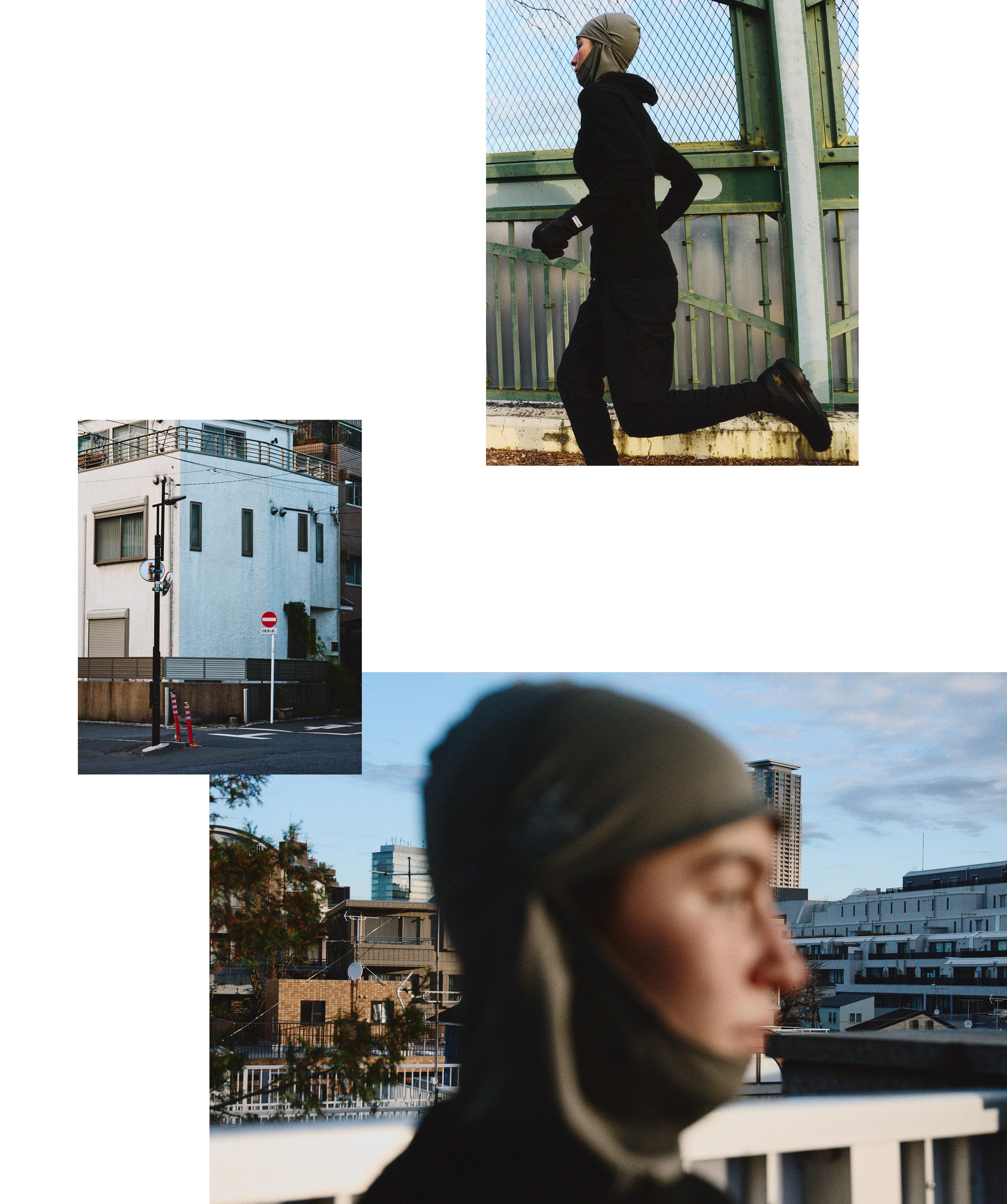冬に走ることを生活のアクセントにせず、環境に対して過剰に身構えることなく、日常の延長に置いてくれる。そういうギアがあるだけで、気持ちはかなり楽になる。そういう意味では、バラクラバもランニングのスイッチだ。耳たぶは、つま先と同じくらい冷たく、走り始めてもなかなか変わらない。つま先、指先、耳の端。心から一番離れたパーツをどう快適に感じるかが、冬の課題であり、おしゃれの醍醐味でもあると思う。