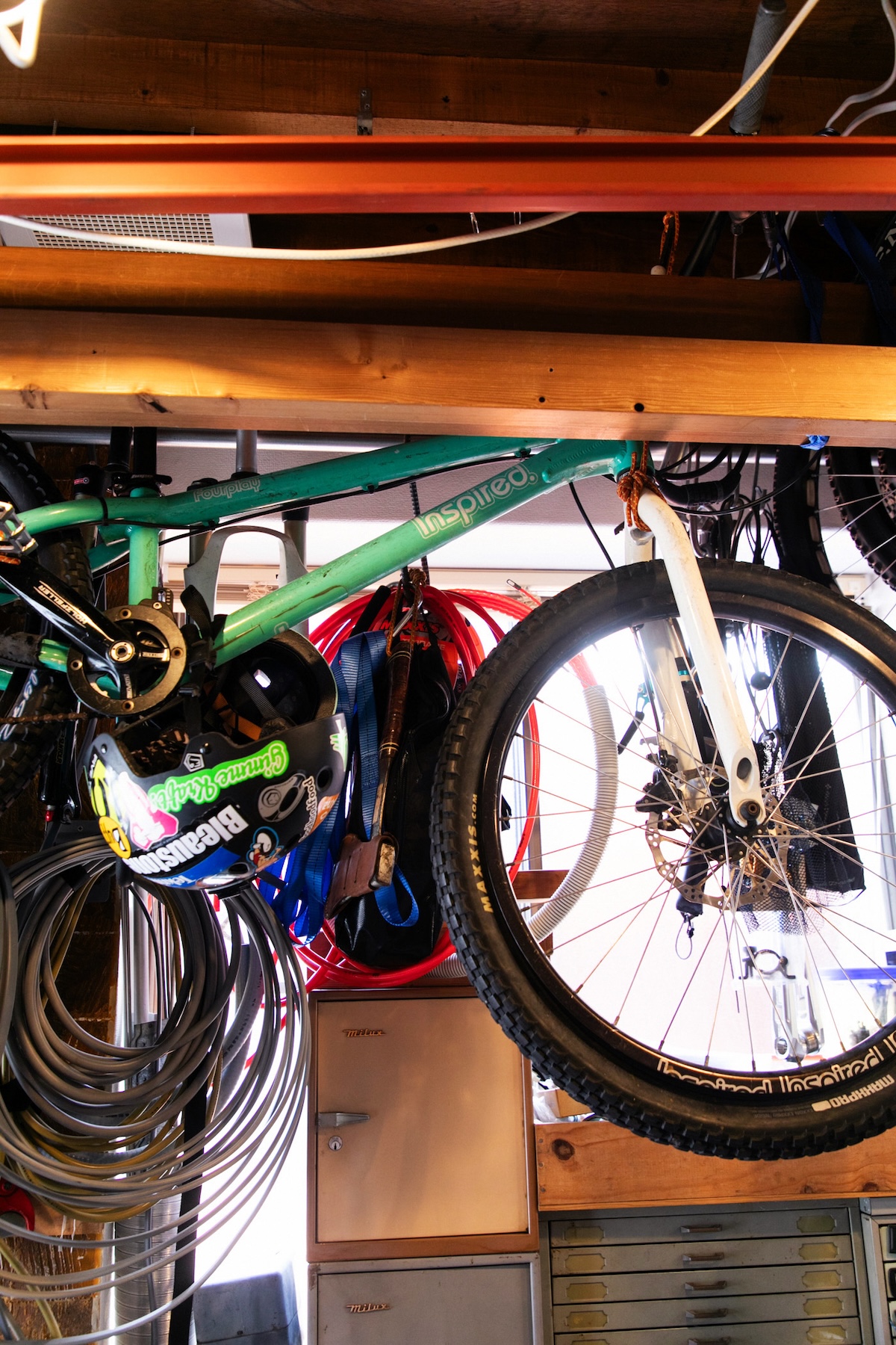 自転車も中村さんの趣味のひとつで、フレームやパーツも並び、一見すると自転車店と見間違うほどだ。