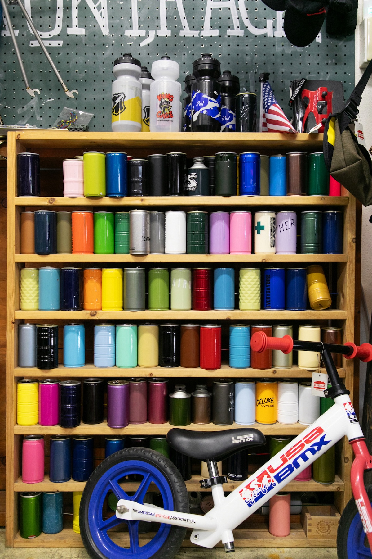 大学で工業デザインを学んだ中村さんのお店には、DIYの道具が多く揃う。自転車や楽器、旅のアイテムも混ざり合い、個性的な空間になっている。