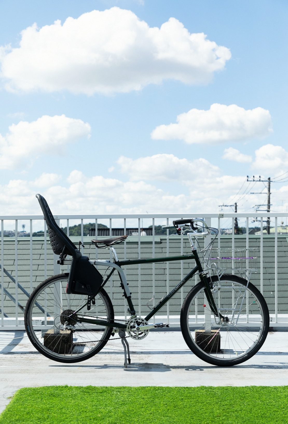 長女の誕生をきっかけに、子どもを乗せられて、なおかつカッコいい自転車を探して選んだ。幡ヶ谷に住んでいたころから、〈BLUE LUG HATAGAYA〉で密かに狙っていた一台だという。