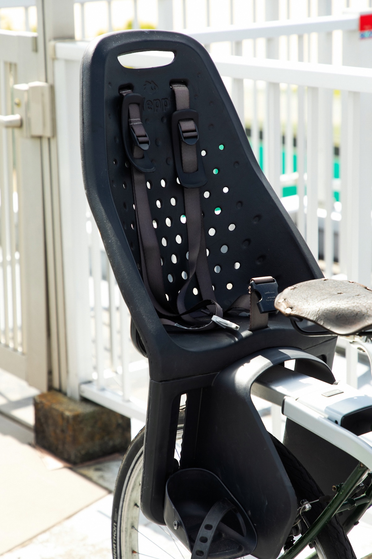 1930年創業のオランダ・GMG社が開発したチャイルドシート〈Yepp〉。独自の合成樹脂で快適な乗り心地を実現し、安心して子どもを乗せられる。付け外しも簡単で使いやすさも大きな魅力だ。