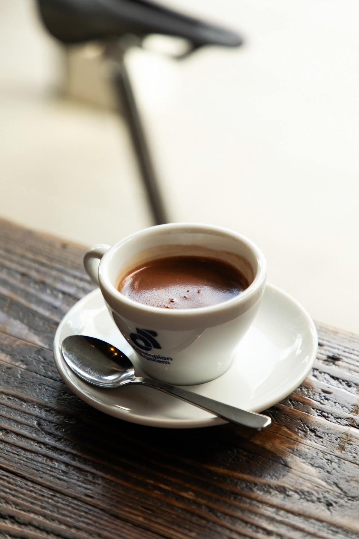 オーナーの棈木亮二さんがヨーロッパで出会った味を再現したホットチョコレート。ベルギー産チョコを使った濃厚な味わいで、メニューには「バナナトプロテイン」もあり、ライドの合間の補給にもぴったり。