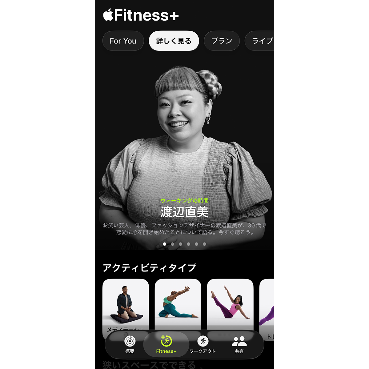 iPhoneさえあればすぐに始められる、〈Apple〉が提供する受賞歴のあるフィットネスとウェルネスのためのサブスクリプションサービス。iPadやApple TVでも利用でき、高強度インターバルトレーニング(HIIT)、ヨガ、コア、ピラティス、筋力、ウォーキング、ランニング、サイクリング、ローイング、ダンス、キックボクシング、マインドフルクールダウンなど、12種類のワークアウトとメディテーションを日本語のデジタル翻訳音声と字幕で楽しめる。Apple WatchやAirPods Pro 3を組み合わせれば、心拍数や消費エネルギーをリアルタイムで確認でき、より充実したトレーニングが可能に。月額980円、または年間7,800円で、最大5人の家族と共有できる。