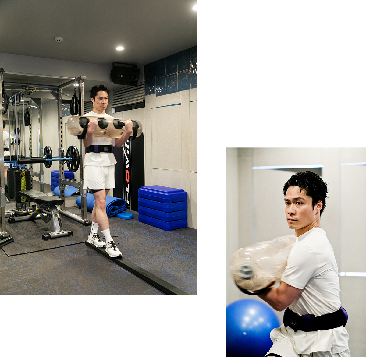 「自宅近くのジムでは、マシーンで背筋や太もも、大胸筋など体の部位ごとに鍛えていきます。それに対してここでは、体全体を使って体幹を意識したボディメイクをしているようなイメージです。このジムに通うようになってからは、体のコアにフォーカスを当てるメニューを経験して、下腹部に力を入れて動くといった基礎的なこともこれまで以上に意識できるようになりました。それにより、まだまだ体が変化していくのを感じています」