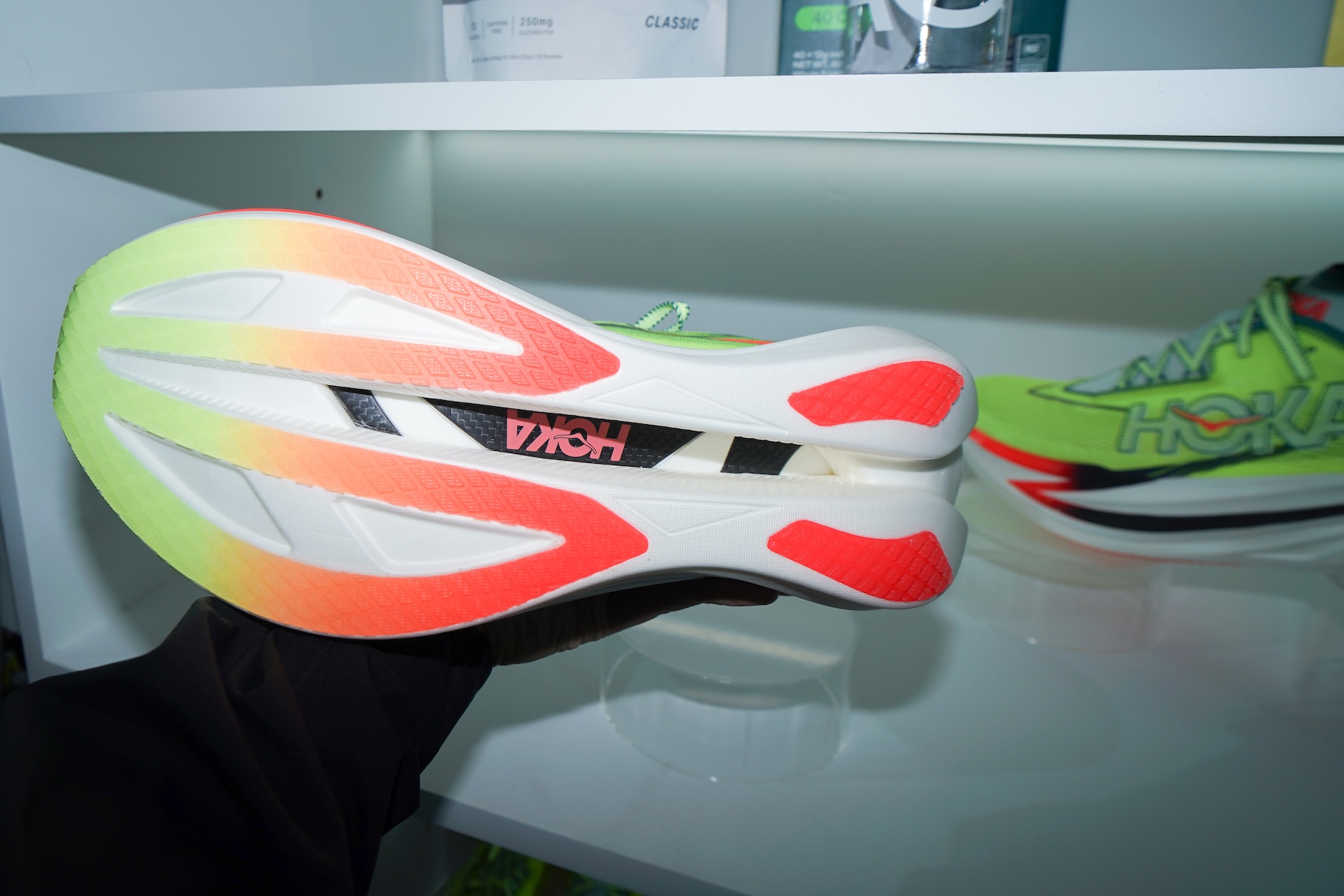 どんなランナーでも速く走れる構造で、かつ厚底のソールでもスタビリティを決して損なわない〈HOKA〉の哲学が詰まっている。
