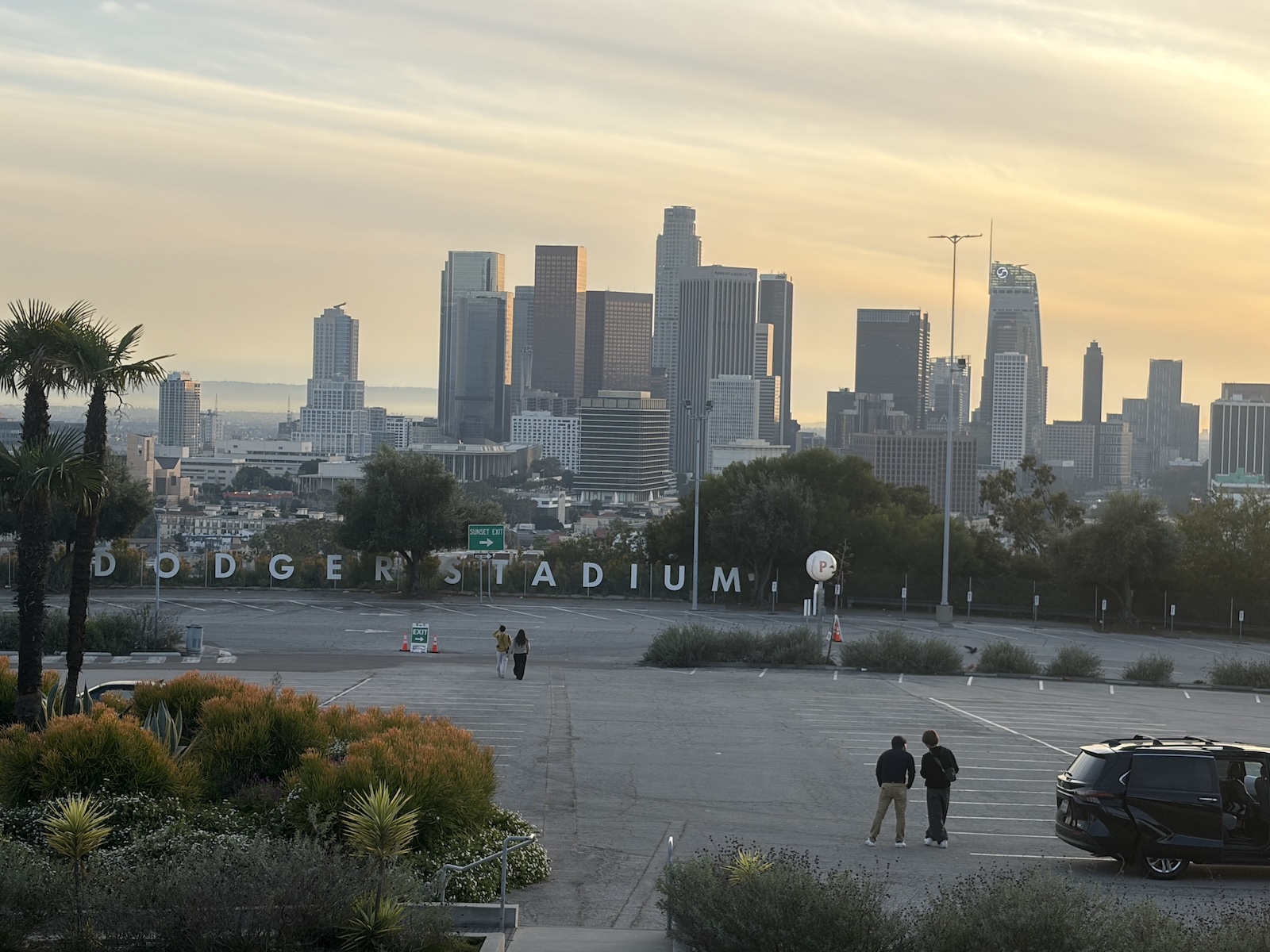 ドジャースタジアムの駐車場付近が「ロサンゼルスマラソン」のスタート地点。