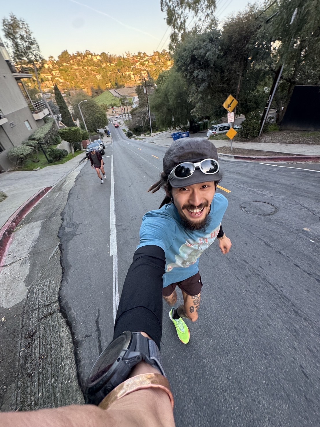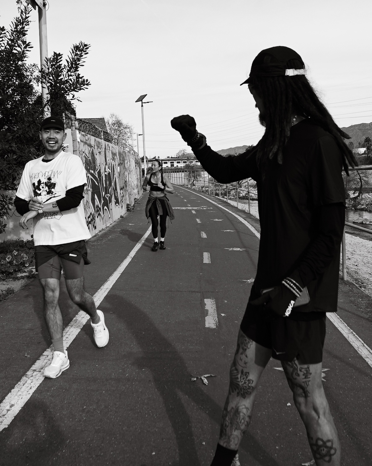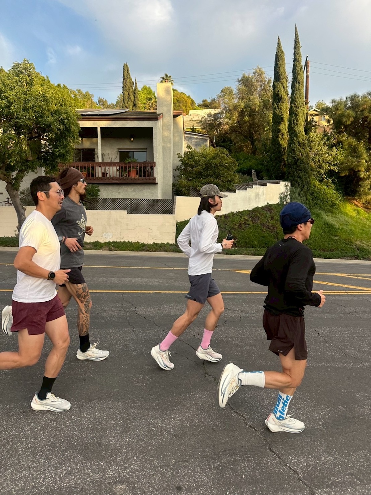 「いいトレーニングになるから、坂をもっと走りたい。日本にはここまで斜度がきつくて長い坂は滅多にないから」という竜童のリクエストのもと、カメラマンのsushimanとシルバーレイク貯水池を周回後は、夕日をバックに坂道をラン。ロサンゼルスのバリエーション豊かなロードを帰国寸前まで楽しんだ。