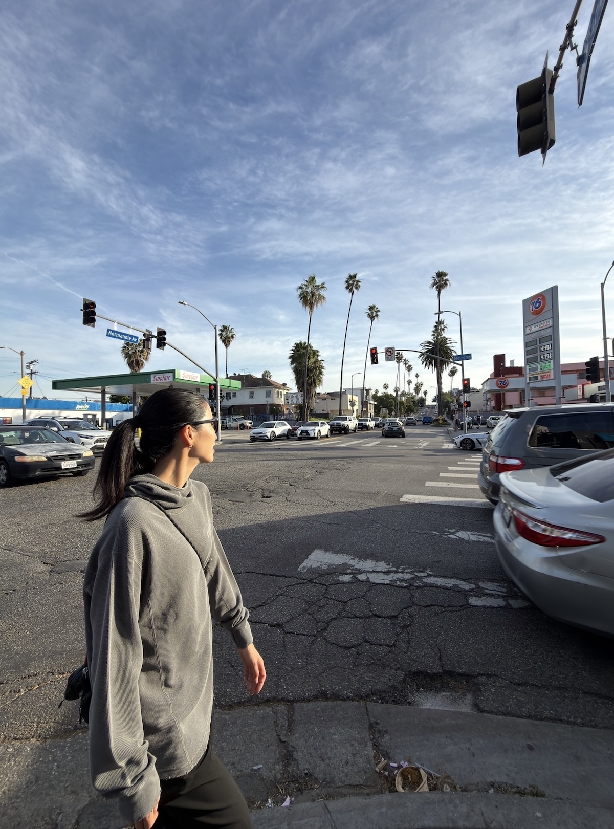 「ここは、『ロサンゼルスマラソン』のスタートの地。あまり海外レースの経験はないけれど、いつか出場してみたい大会なんです。開放感があってテンションが上がるスタート地点だけど、レース的な観点で考えると難しい場所なのかも。次は、ドジャースの試合も観られたら最高(笑)」