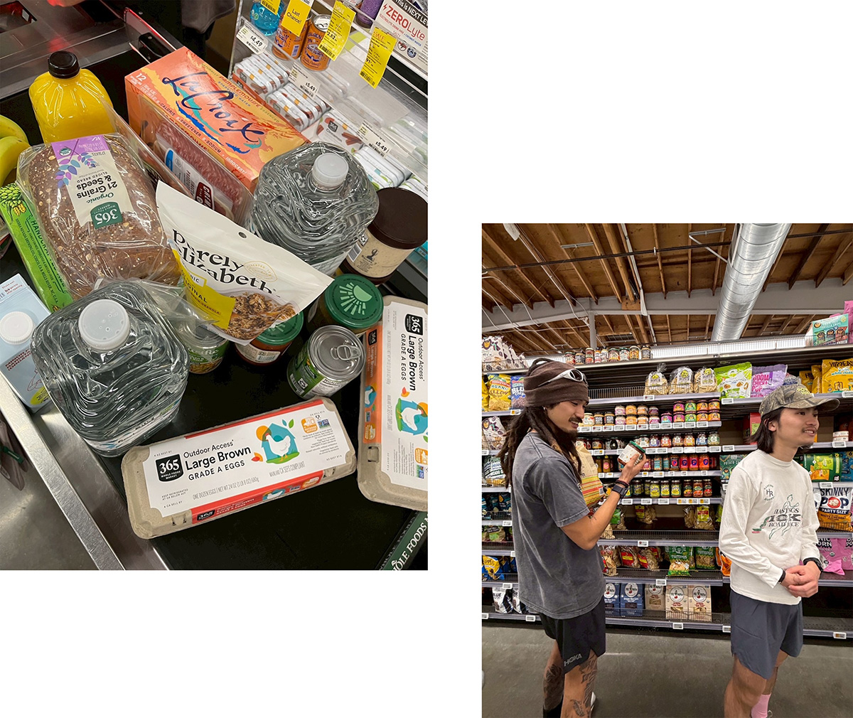 左/スーパーマーケット〈Whole Foods Market〉で朝食や軽食の買い出し。