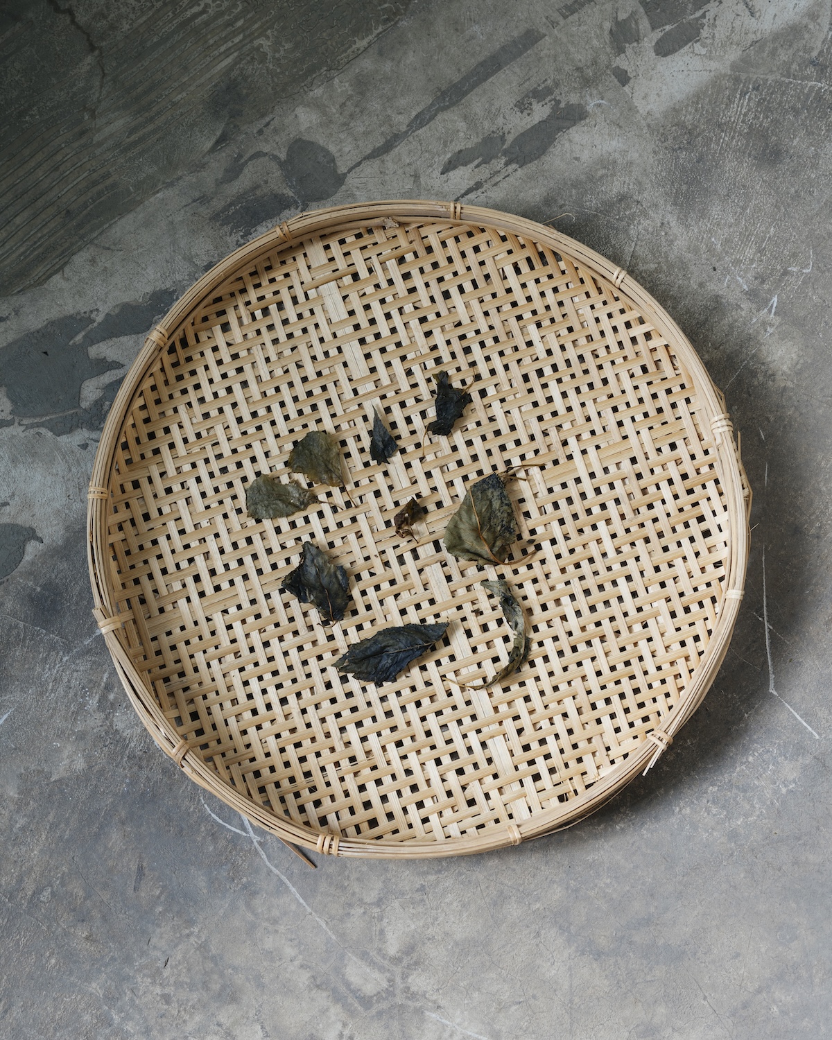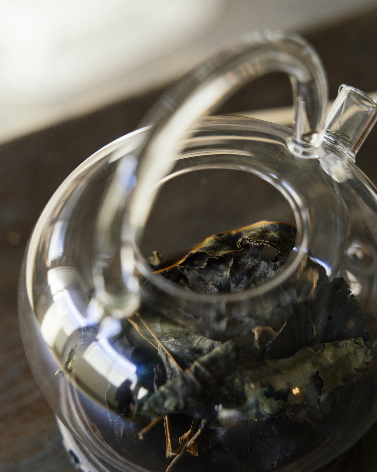 森の落ち葉も、寒い夜には凍り、昼間の太陽で解凍されます。その工程に着想を得て、最終的には熱加工し、お茶として完成させました。