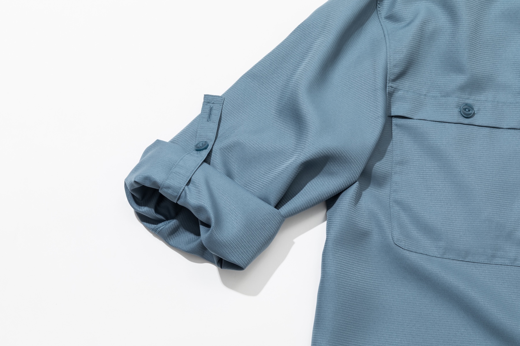 ロールアップした袖はタブで留められるのもありがたい。